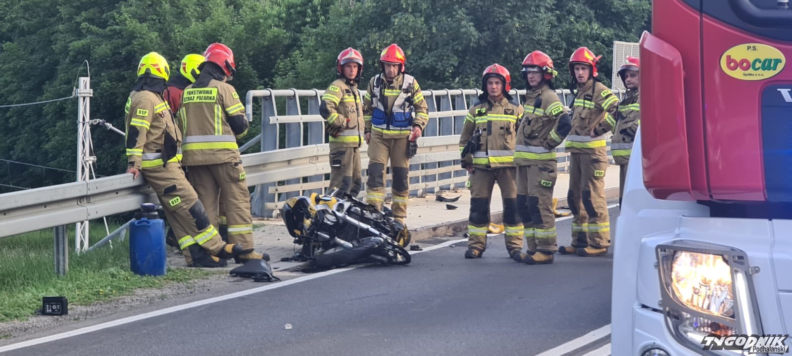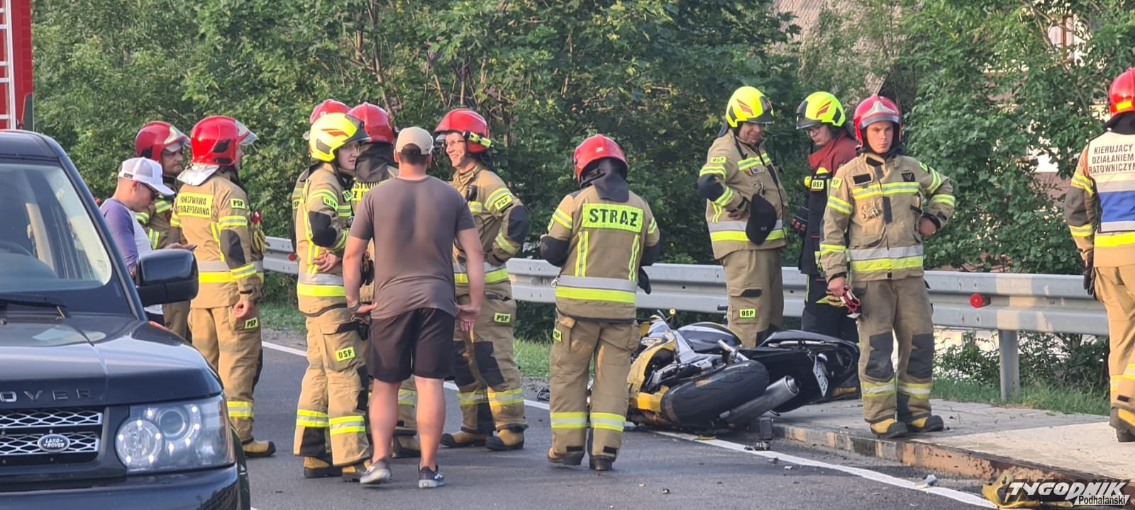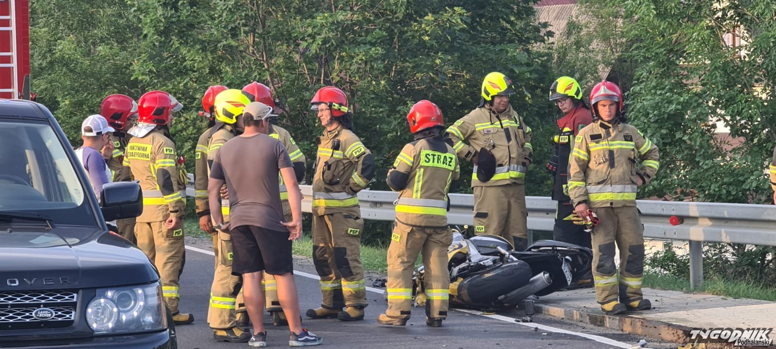 Czołowe zderzenie motocykla z osobówką w Białym Dunajcu. Zakopianka całkowicie zablokowana (ZDJĘCIA)