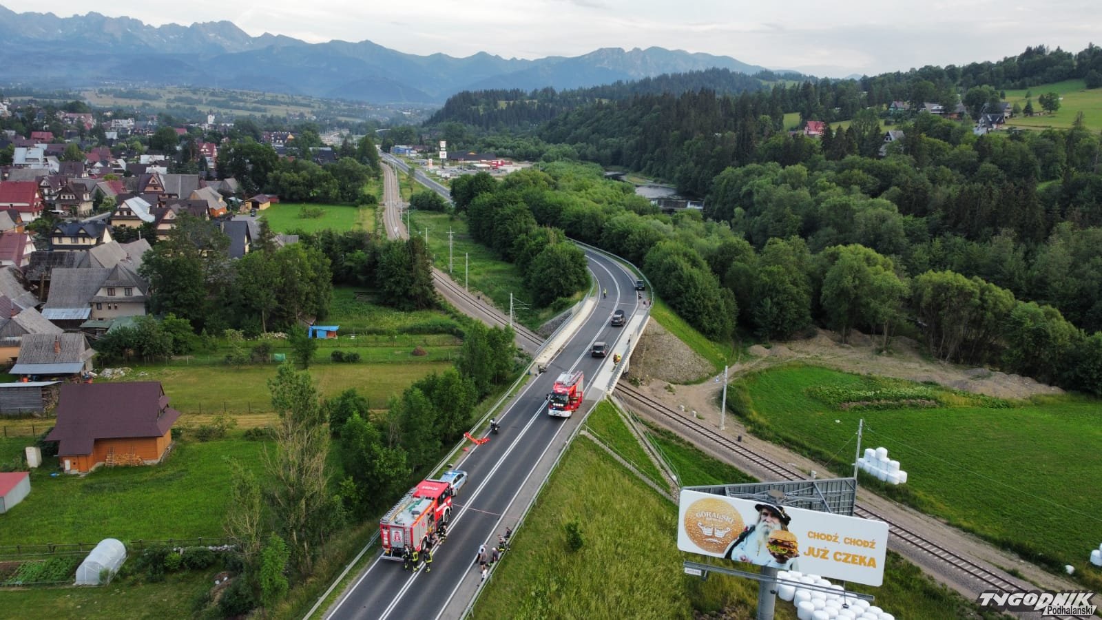 Służby kierują ruch samochodowy na starą drogę.