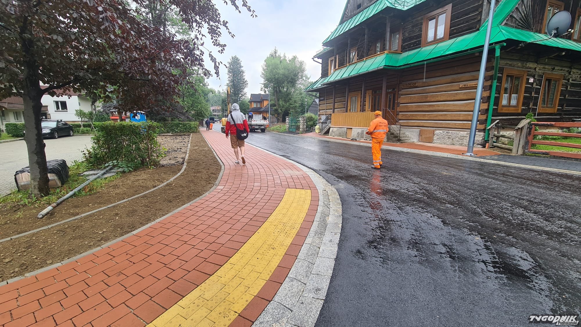 Wczoraj drogowcy kładli wierzchnią warstwę asfaltu. Na zdjęciu możecie zobaczyć jak ulica wygląda dziś. Termin zakończenia prac upływa 10 lipca, ale roboty udało się już prawie zakończyć teraz. Na ulicy mamy wreszcie bezpieczny chodnik, zniknęła tylko jedna z ostatnich bezpłatnych zatok postojowych pod Giewontem. Nie ma też ścieżki dla rowerzystów. Ulica dla ruchu została otwarta we wtorek wieczorem.