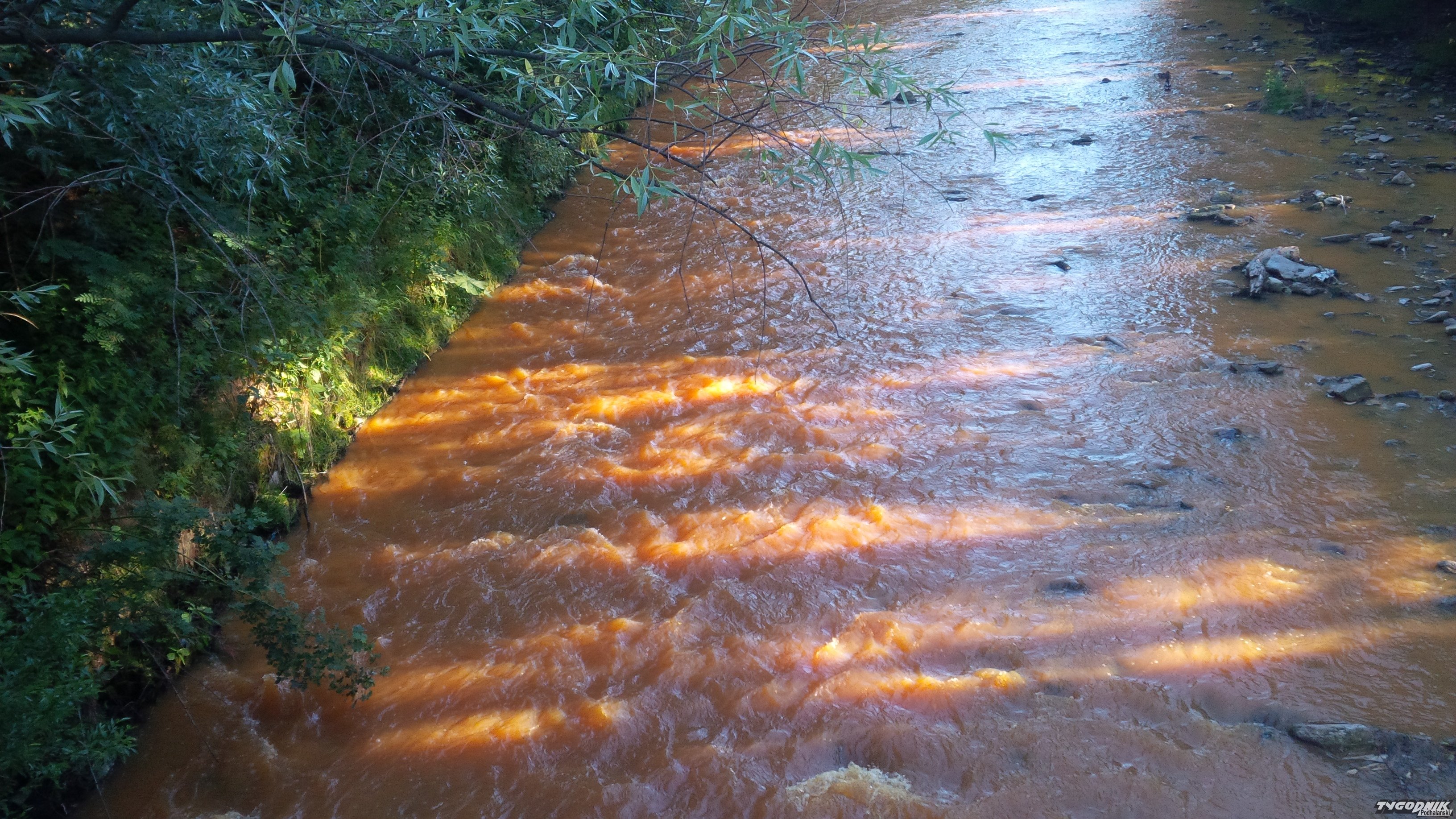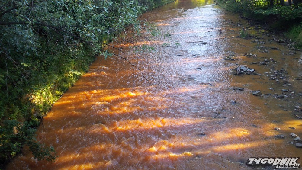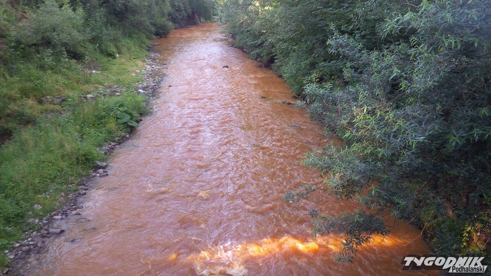 - Z relacji świadków którzy zauważyli zanieczyszczenie na wysokości ul. Króle wynika, że woda miała kolor cegły. Na miejscu była Policja, która bada sprawę - informuje Mirosław Wnuk z zarządu koła Zakopane Polskiego związku Wędkarskiego. Zdjęcia zanieczyszczonego ptolu z okolic Harendy wysłał nam też Czytelnik.