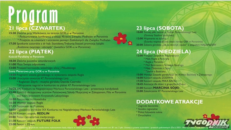 Od czwartku do niedzieli letnicy i mieszkańcy, którzy odwiedzą Poronin z pewnością znajdą tu coś dla siebie.