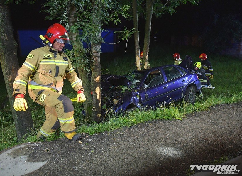 Auto jadące z dużą prędkością wypadło z drogi i uderzyło w drzewo. Strażacy musieli wydostawać osobę zakleszczoną w samochodzie. Karetka pogotowia zabrała ją do szpitala. Policja ustala jak doszło do wypadku.