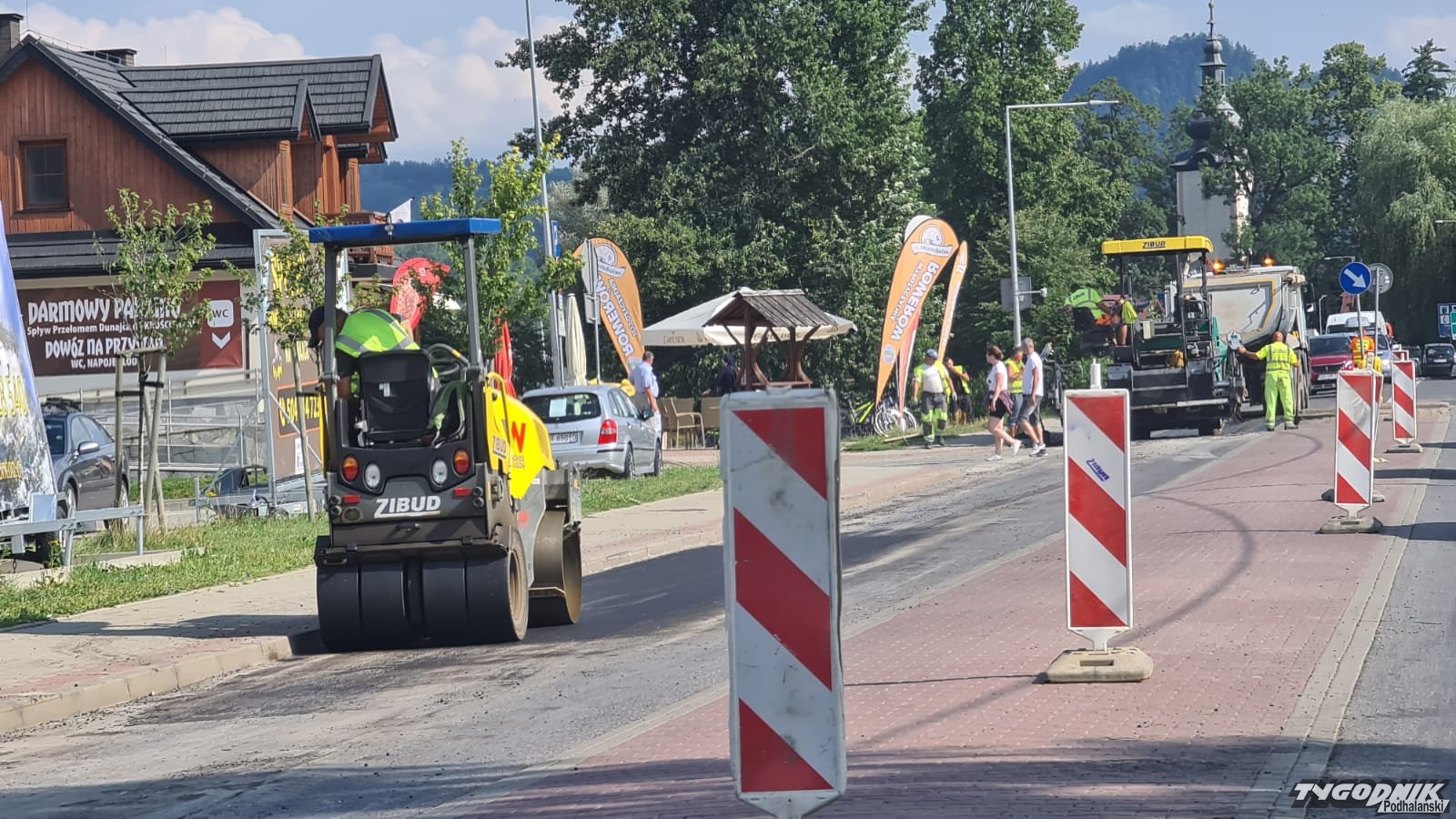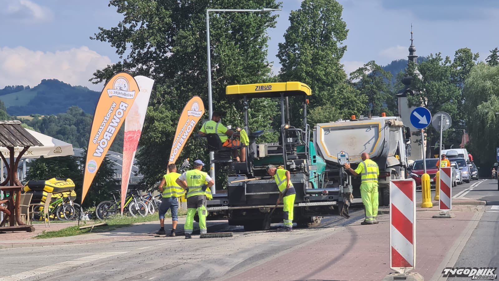 Drogowcy naprawiali drogę.