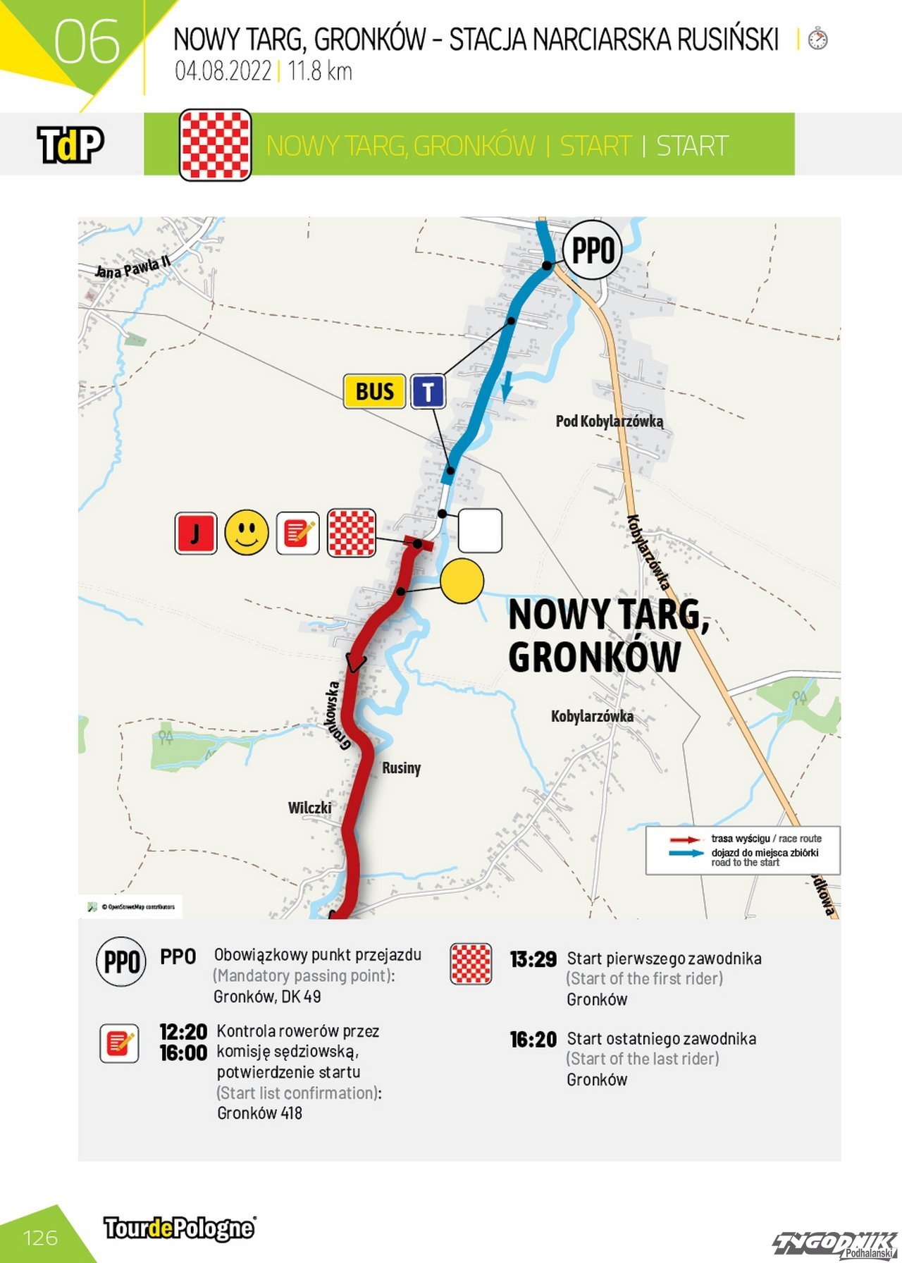 Utrudnienia potrwają od około godz. 10 do ok. godz. 17.00. 79. edycja „Tour de Pologne" to wyzwanie nie tylko dla gmin i miast ale również dla wszystkich służb zaangażowanych w bezpieczeństwo uczestników wyścigu, zatem prosimy kierowców, pieszych uczestników ruchu drogowego o ostrożność, wyrozumiałość i stosowanie się do poleceń funkcjonariuszy i służb porządkowych.
