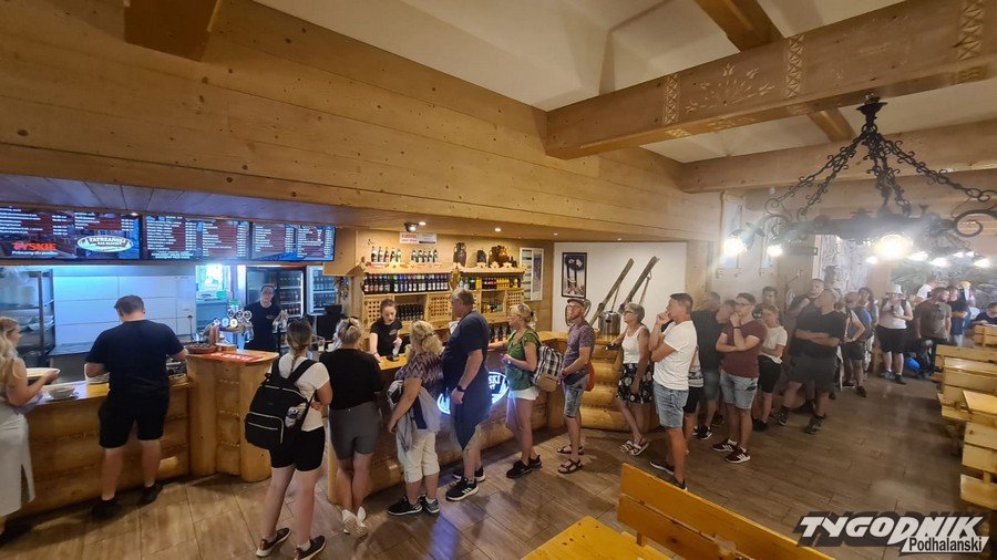 Pora obiadowa. Restauracje w Zakopanem oblężone przez turystów. Taka kolejka w Barze Tatrzańskim obok ronda kuźnickiego.
