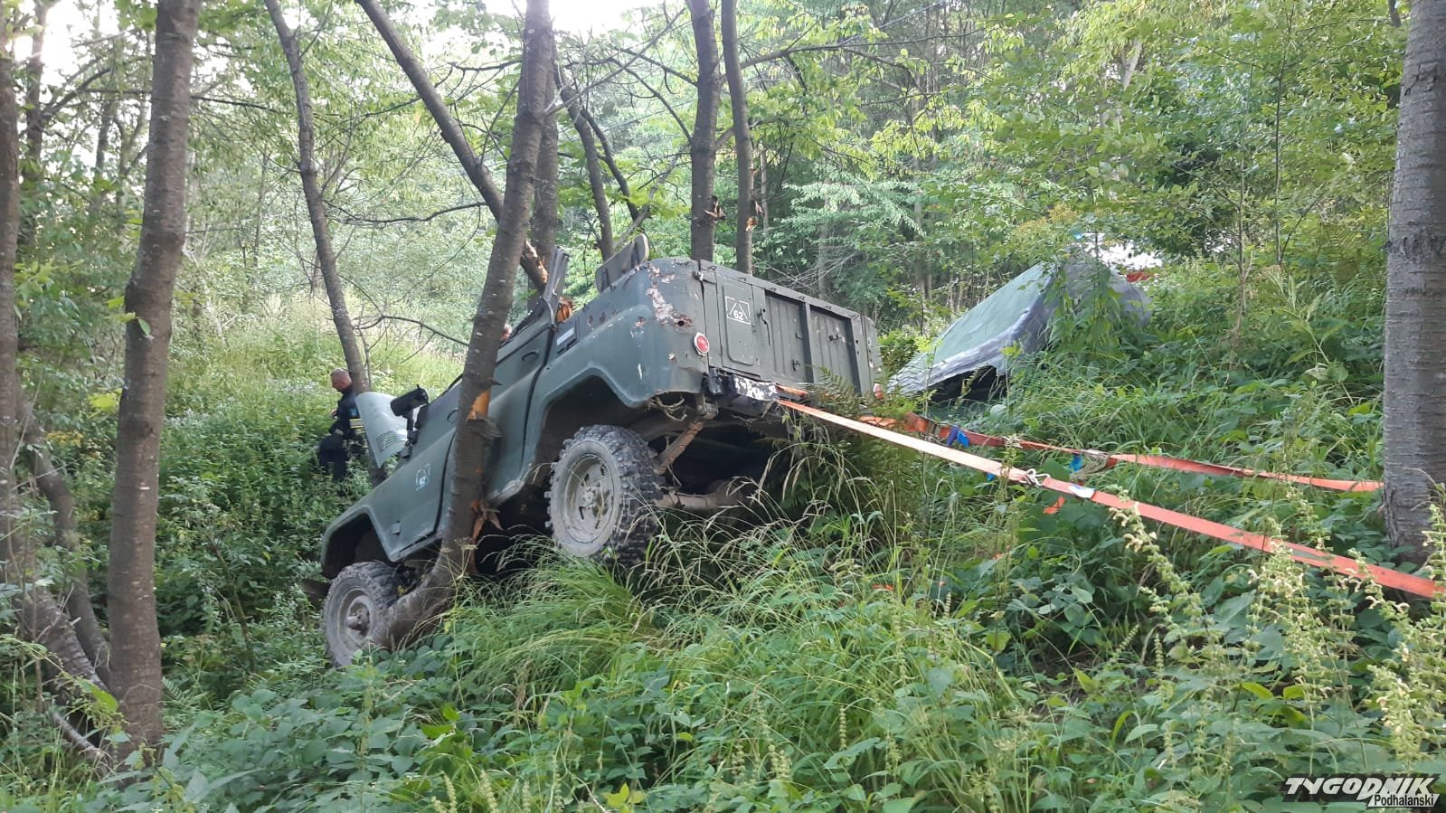 Samochód terenowy na drzewie. Do wypadku doszło w rejonie Bereśnika