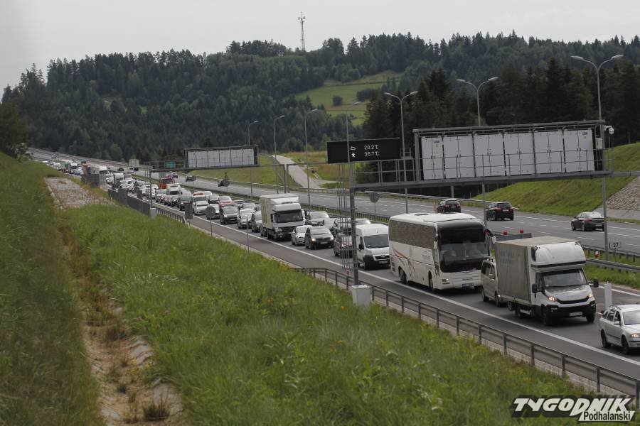 W korku trzeba odstać kilka a może i kilkanaście minut. Zator tworzy się na pasie w stronę Krakowa, przy końcu nowego odcinka zakopianki u wlotu do przyszłego tunelu.