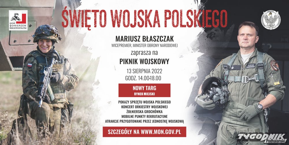 Piknik Wojskowy wpisze się w 20 Jarmark Podhalański, a na zgromadzonych gości czekać będzie moc atrakcji: oprócz pokazu sprzętu wojskowego nie zabraknie również żołnierzy z Wojsk Specjalnych czy Wojsk Obrony Terytorialnej, od których będzie można dowiedzieć się jak wygląda ich służba. Dodatkowo powstanie też Mobilny Punkt Rekrutacyjny wystawiony przez Wojskowe Centrum Rekrutacji w Nowym Targu, gdzie będzie można zapisać się do służby w Wojsku Polskim. Ponadto zagra dla nas Orkiestra Wojskowa Garnizonu Kraków. Oczywiście nie zabraknie też żołnierskiego poczęstunku w postaci grochówki!