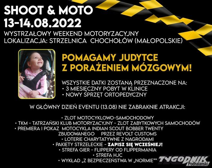 W najbliższy weekend zapraszamy do Chochołowa na SHOOT&MOTO. To motoryzacyjna impreza charytatywna dla Judytki, która cierpi na porażenie mózgowe.