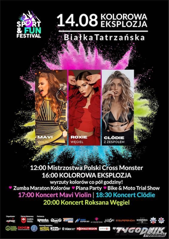 Radosne i kolorowe wakacyjne święto muzyki i sportu z Tatrami w tle czyli Sport & Fun Festival i Kolorowa Eksplozja w niedzielę 14.08 na Kotelnicy Białczańskiej.