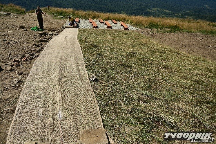 Teren regenerujemy obecnie poprzez wyrównanie terenu, wyłożenie skoszonych roślinności trawiastej z nasionami roślin typowych dla połonin. Dodatkowo przykrywamy takie miejsca biodegradowalnymi matami.