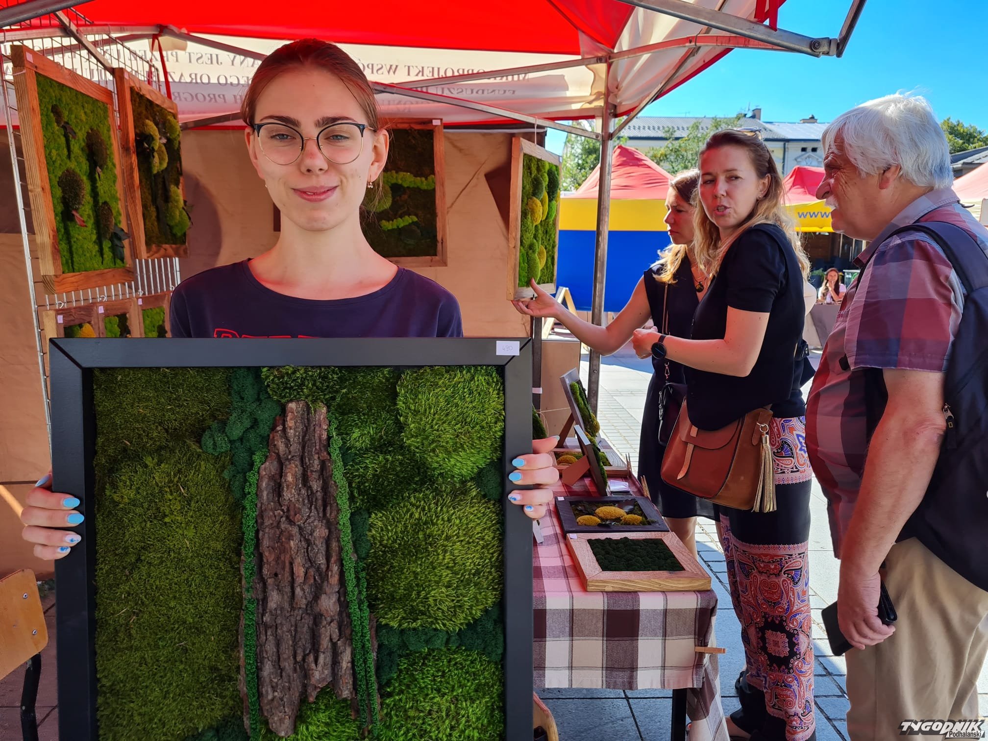 Na stoiskach można kupić biżuterię, oryginalne pamiątki, kosmetyki, smakołyki. Nowotarżanka Sarah Pawluśkiewicz sprzedaje na swoim stosiku żywe obrazy. Wykonuje je z mchu chrobotka. - Nic z nim nie trzeba robić, on żyje bez podlewania, jest miernikiem wilgotności w domu - opowiada.