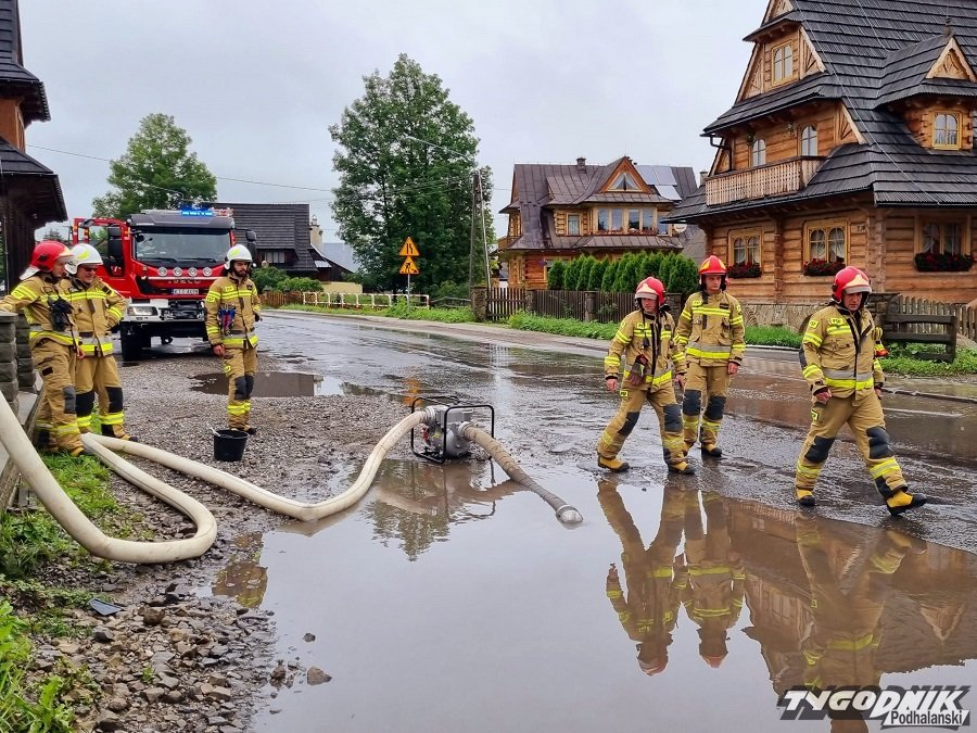 Strażackie zastępy z Witowa i Zakopanego ratowały zalaną drogę w Witowie.