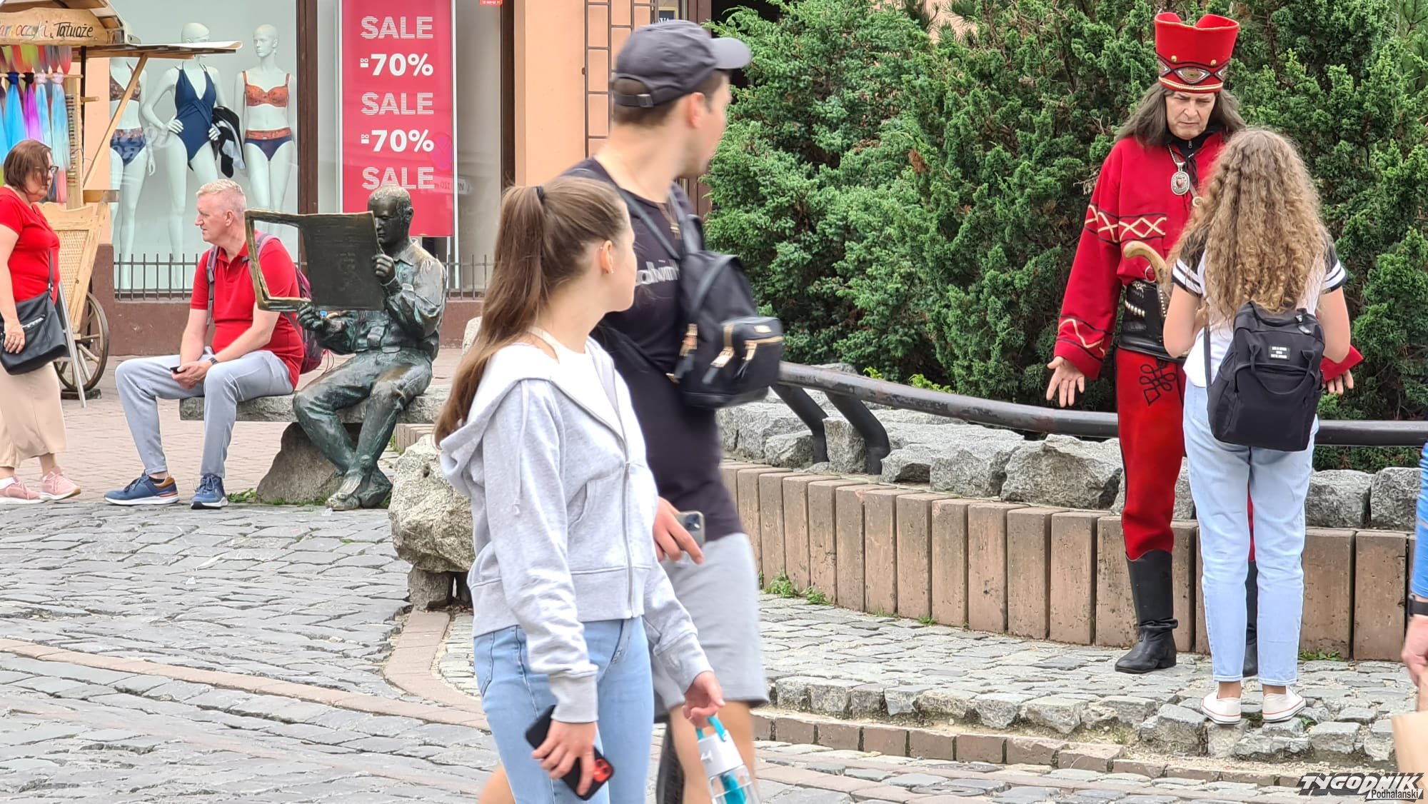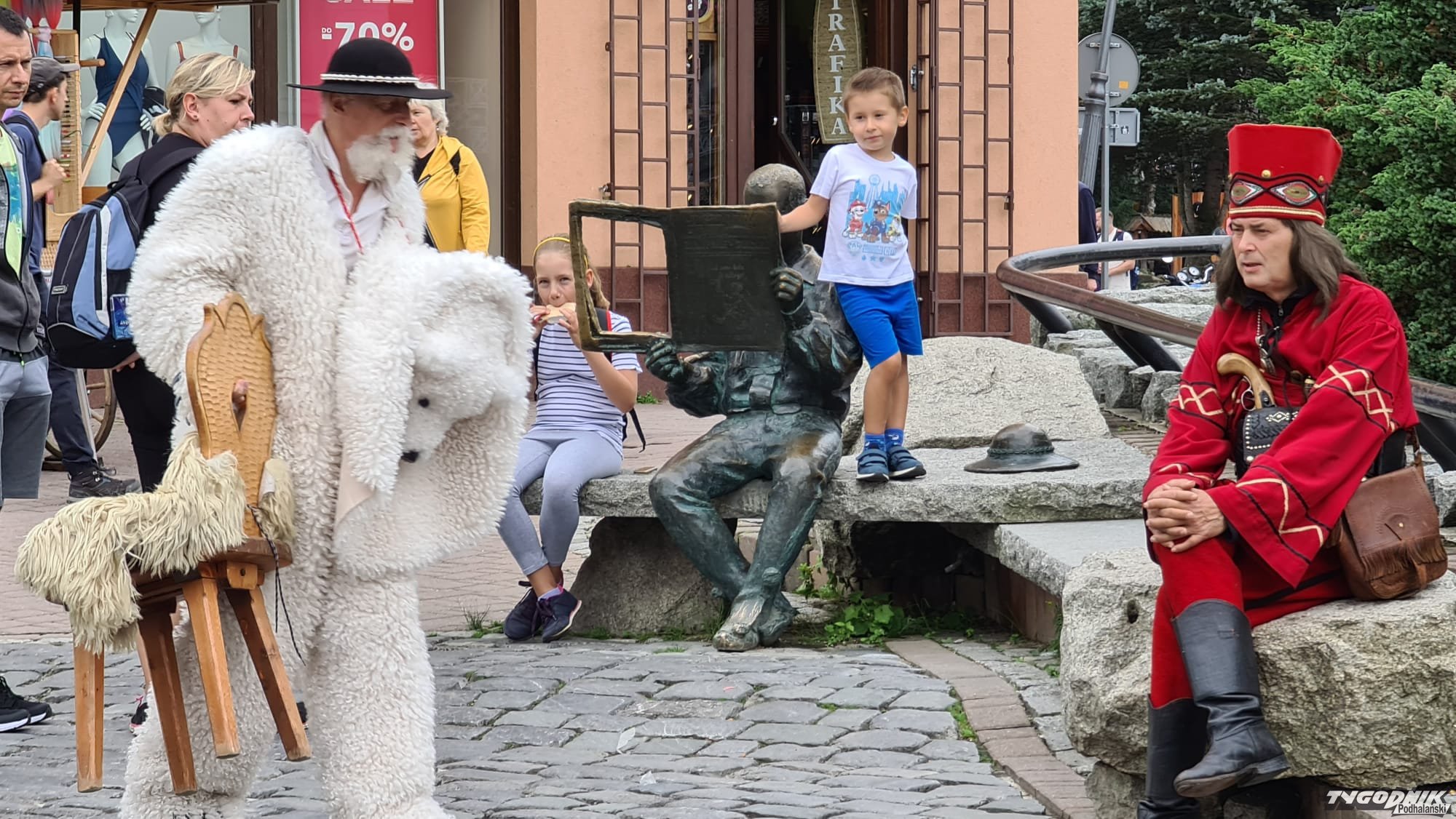 Krupówki dziś pełne turystów. Tłum szczelnie wypełnia główny zakopiański trakt spacerowy. Fakt. Pochmurna, przesycona wilgocią aura nie zachęca do wypraw wysokogórskich.