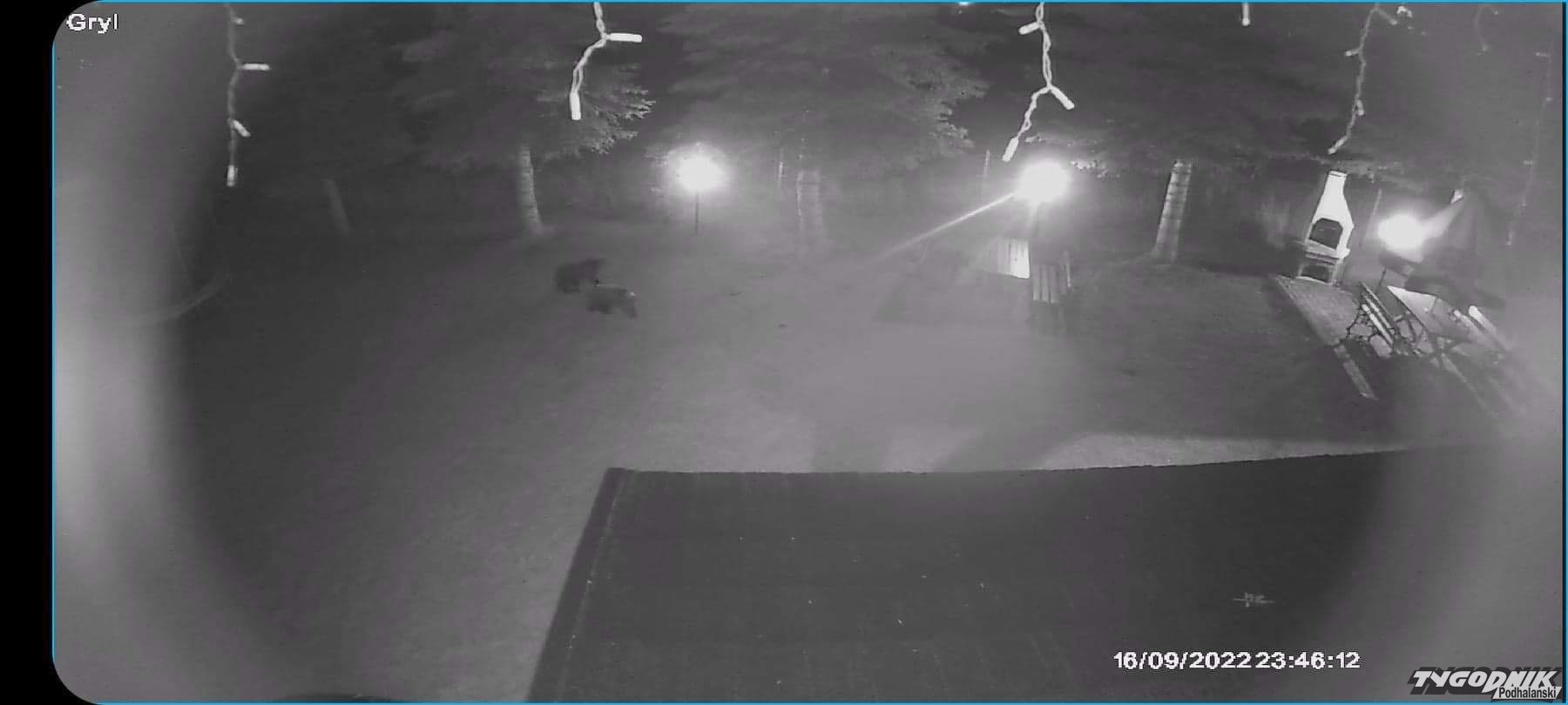 Niedźwiedzie przechadzały się tuż przed kamerami monitoringu, środkiem podwórka jednego z domów przy ulicy Pitoniówka. To młode osobniki, z którymi nie ma matki. Zdjęcie przesłała nam czytelniczka, pani Kasia.