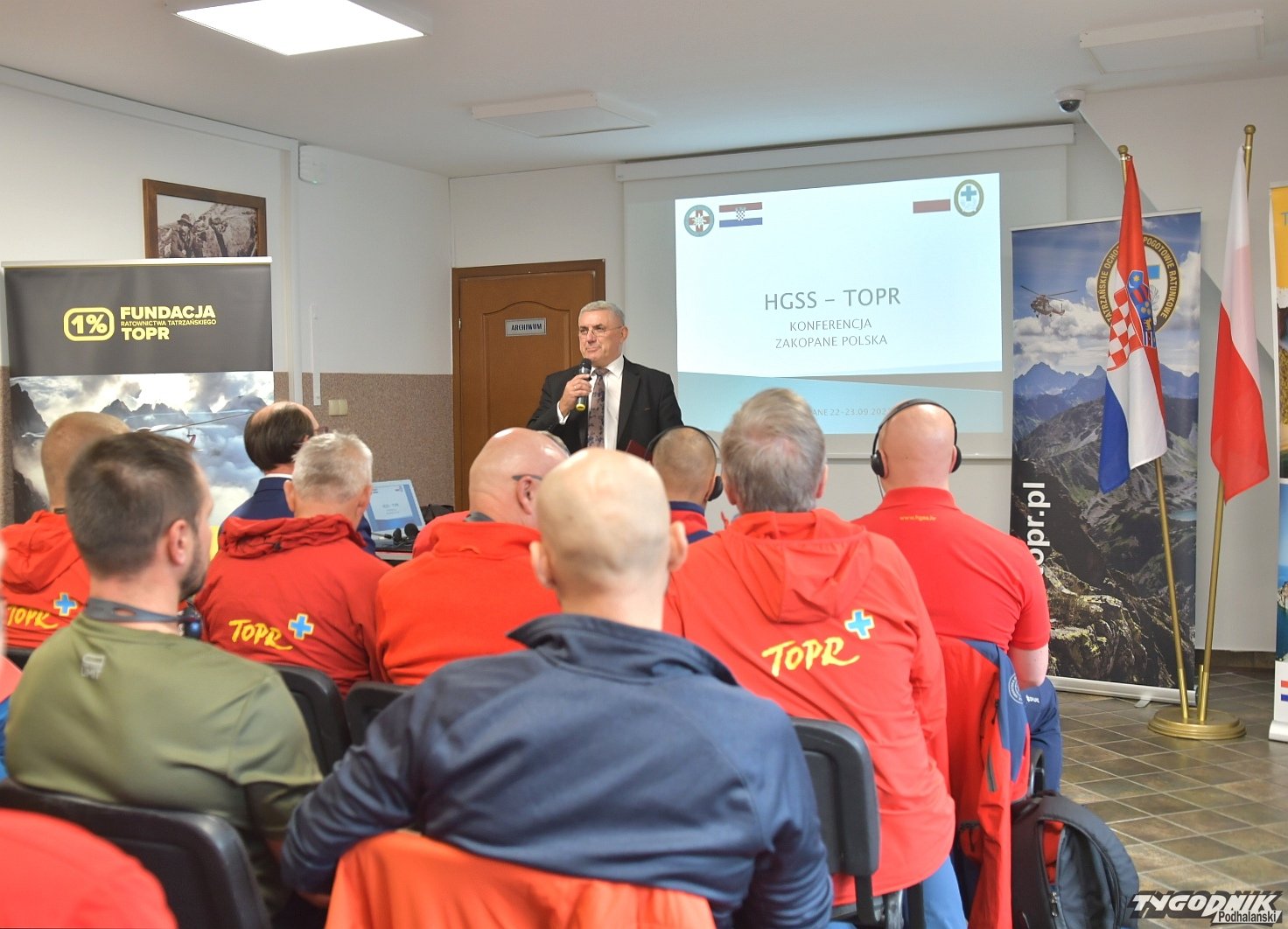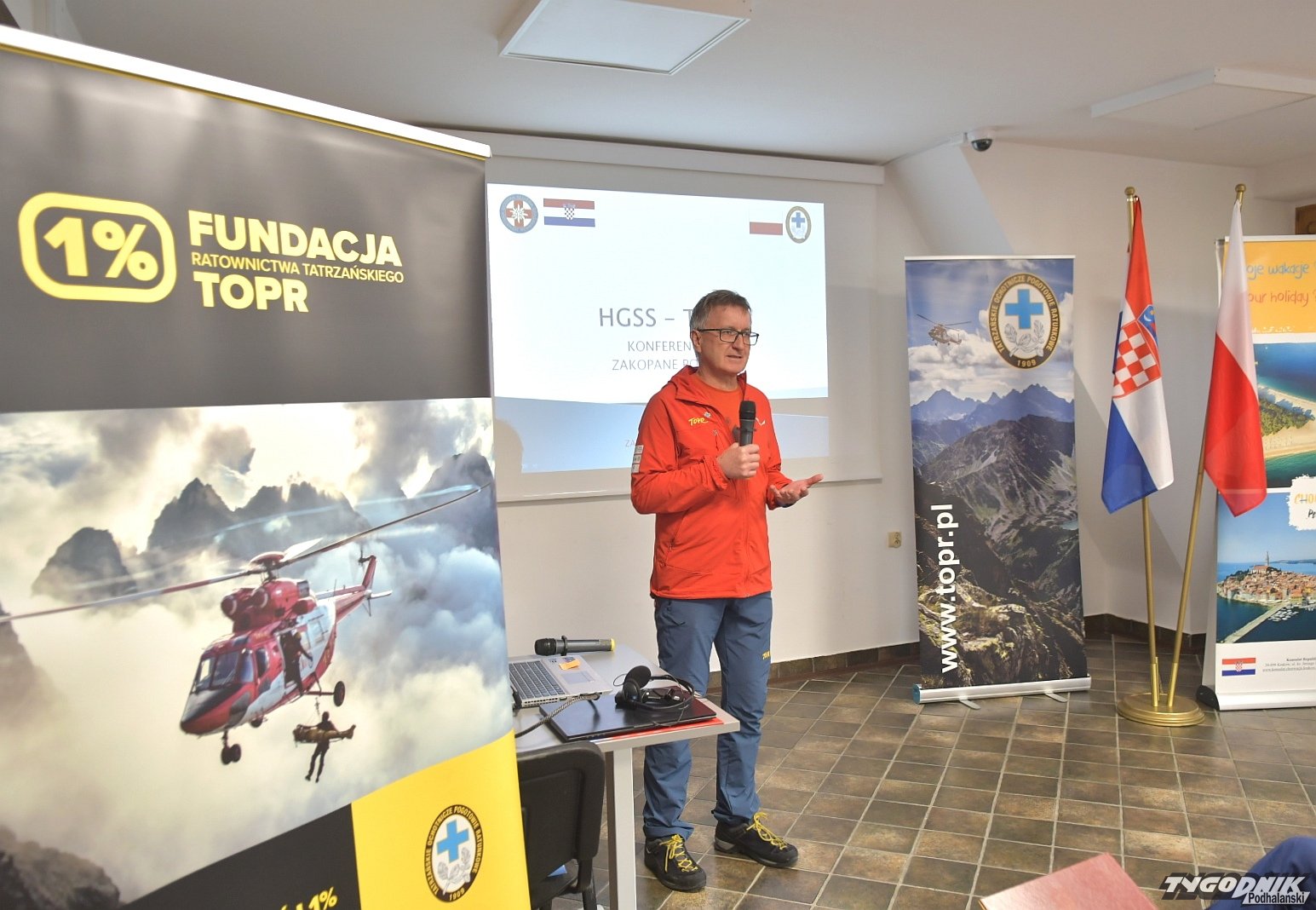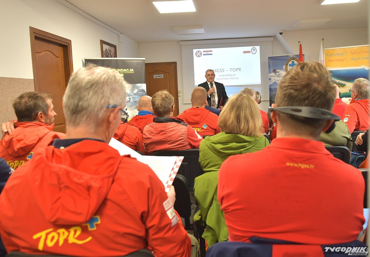 W Zakopanem gości dziś delegacja HGSS - Chorwackiego Górskiego Pogotowia Ratunkowego. Ratownicy przyjechali na konferencję zorganizowana w siedzibie TOPR. Ratownicy z obu krajów wymieniają się doświadczeniami związanymi z systemem ratownictwa w obu krajach, technikami ratowniczymi stosowanymi w górach, sprzętem, organizacją wypraw ratunkowych, również tych jaskiniowych. Wszystko po to, aby poprawić bezpieczeństwo w polskich i chorwackich górach. Wydarzeniu patronuje Konsulat Republiki Chorwackiej w Polsce. W spotkaniu uczestniczy konsul honorowy Chorwacji Paweł Włodarczyk, który razem z Janem Krzysztofem, naczelnikiem TOPR i Janem Glucem, przewodniczącym zakopiańskiej Rady Miasta rozpoczął obrady.