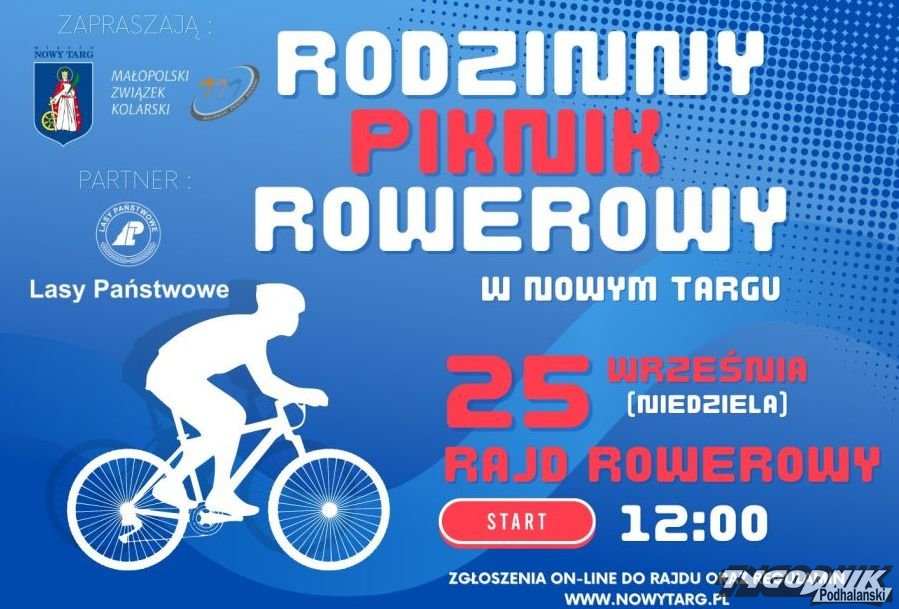 W niedzielę 25.09 Małopolski Związek Kolarski i Miasto Nowy Targ zapraszają miłośników wycieczek rowerowych do udziału w rajdzie rowerowym w ramach Rodzinnego Pikniku. Jechać można indywidualnie, albo całymi rodzinami.
