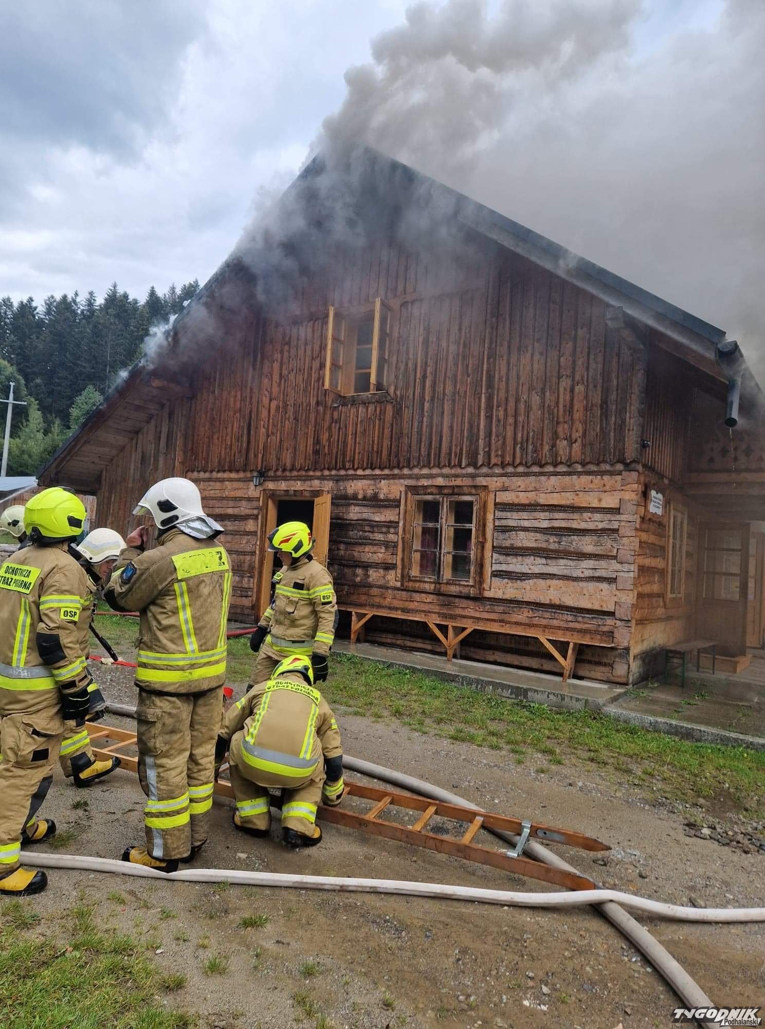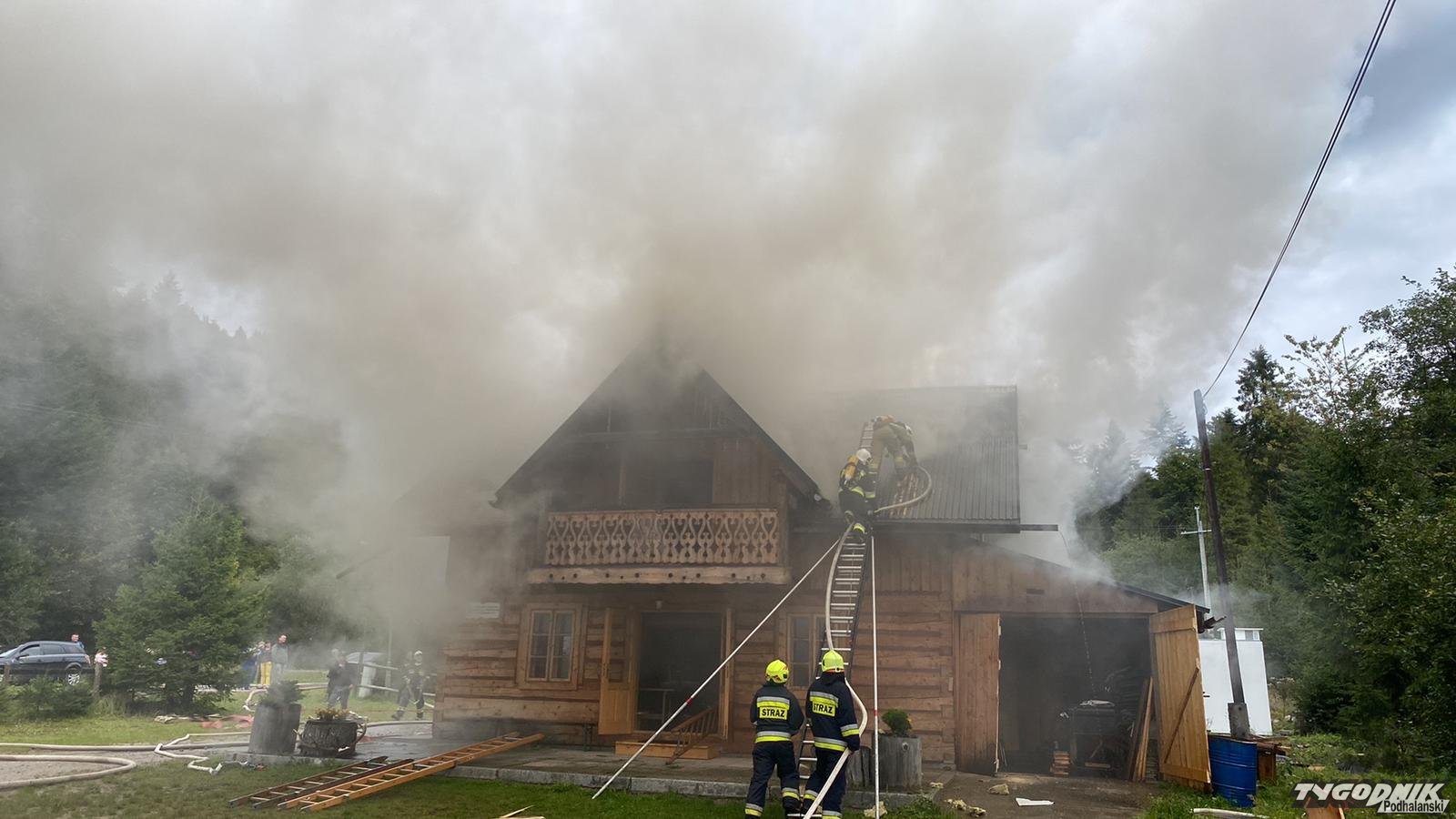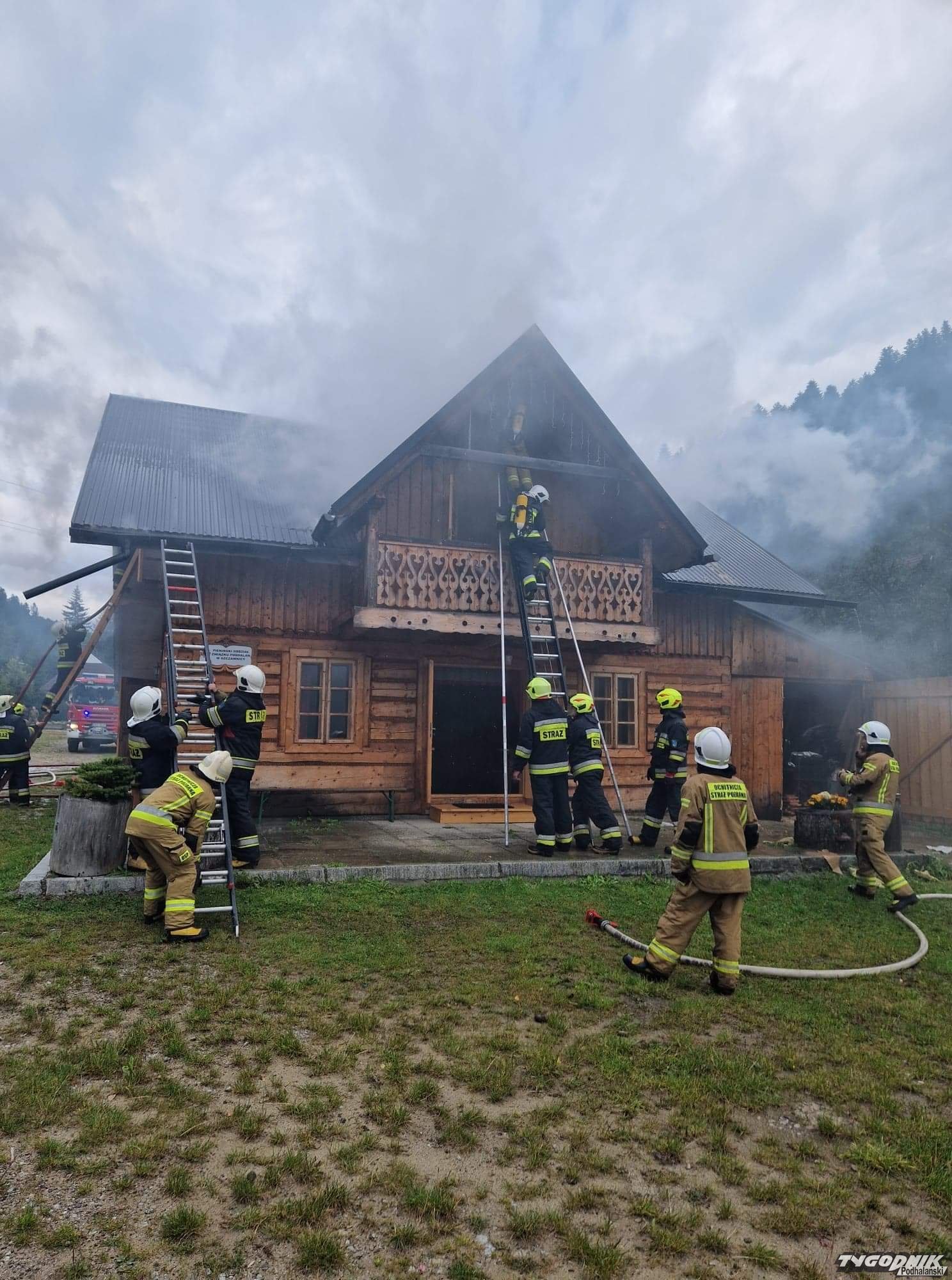 Jak relacjonują strażacy z OSP w Szczawnicy do pożaru doszło w czwartek, akcja rozpoczęła się o godz. 15.29. Do gaszenia domu przy ul. Kunie ruszyły zastępy GLM Mercedes G , SOP Nissan Patrol , UTV Polaris Ranger, GCBAM Mercedes, GBART Mercedes, OSP Jaworki, OSP Szlachtowa, OSP Krościenko, JRG Nowy Targ. Na miejscu by l także patrol policji.