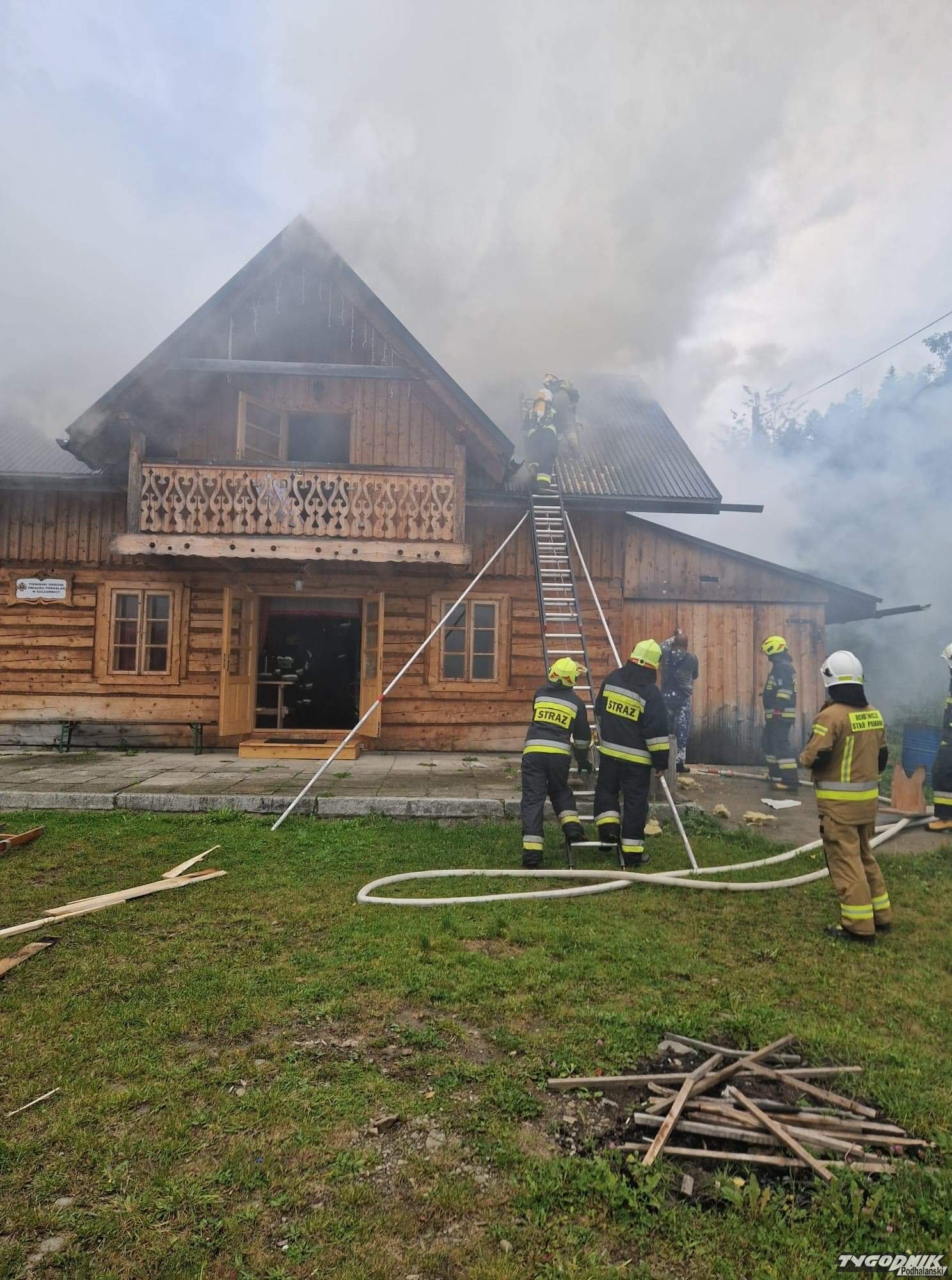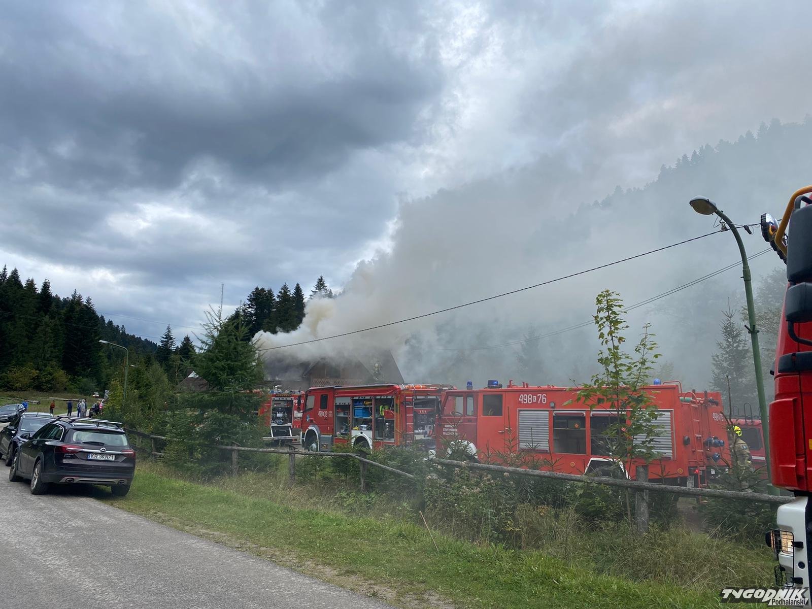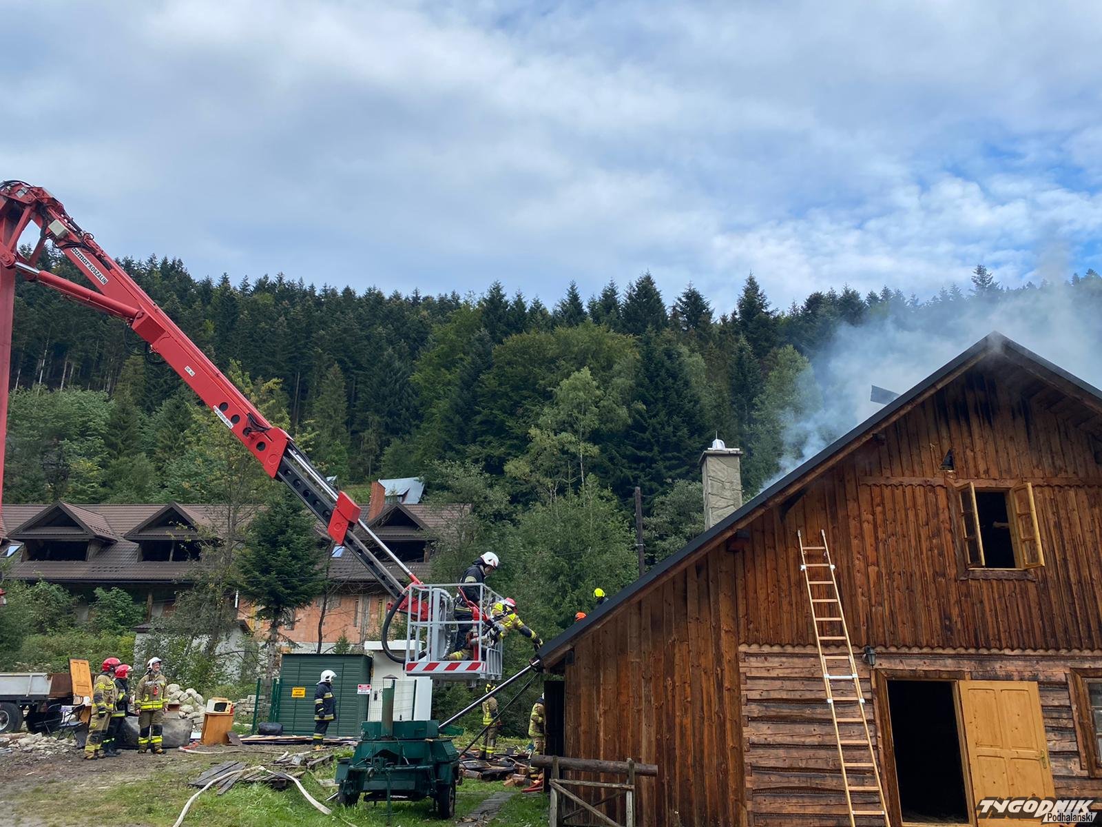 Jak relacjonują strażacy z OSP w Szczawnicy do pożaru doszło w czwartek, akcja rozpoczęła się o godz. 15.29. Do gaszenia domu przy ul. Kunie ruszyły zastępy GLM Mercedes G , SOP Nissan Patrol , UTV Polaris Ranger, GCBAM Mercedes, GBART Mercedes, OSP Jaworki, OSP Szlachtowa, OSP Krościenko, JRG Nowy Targ. Na miejscu by l także patrol policji.