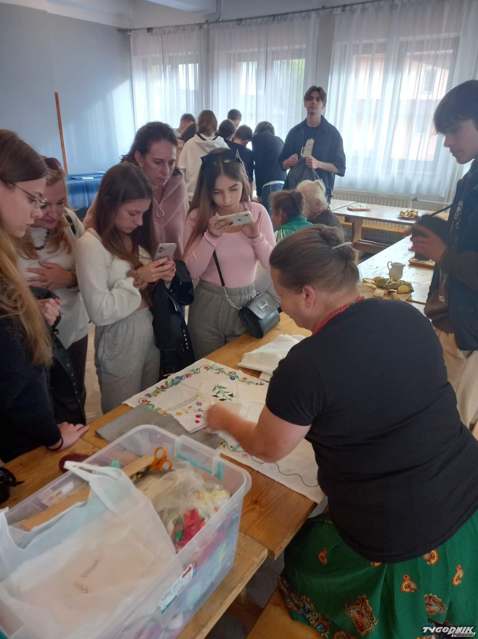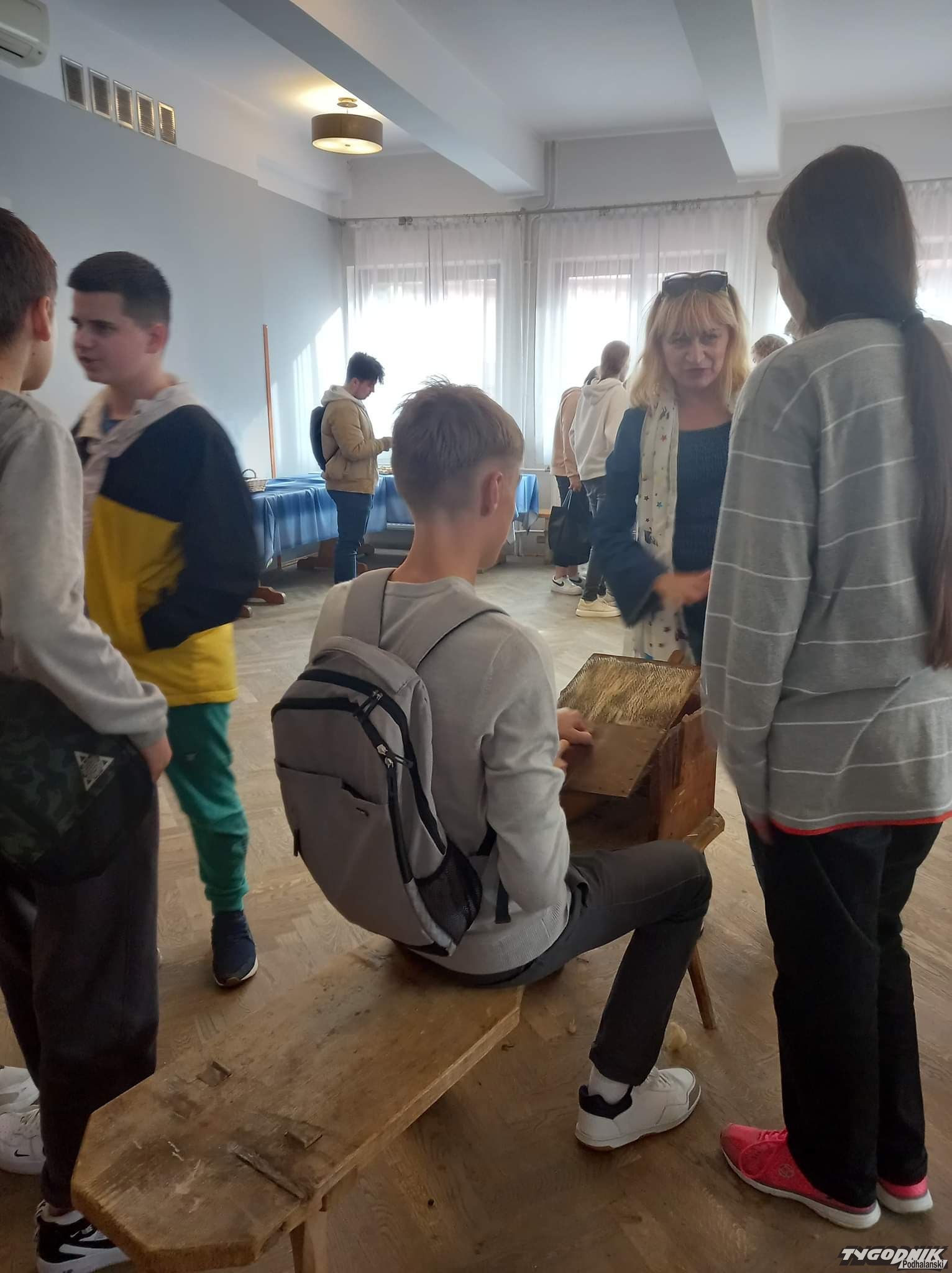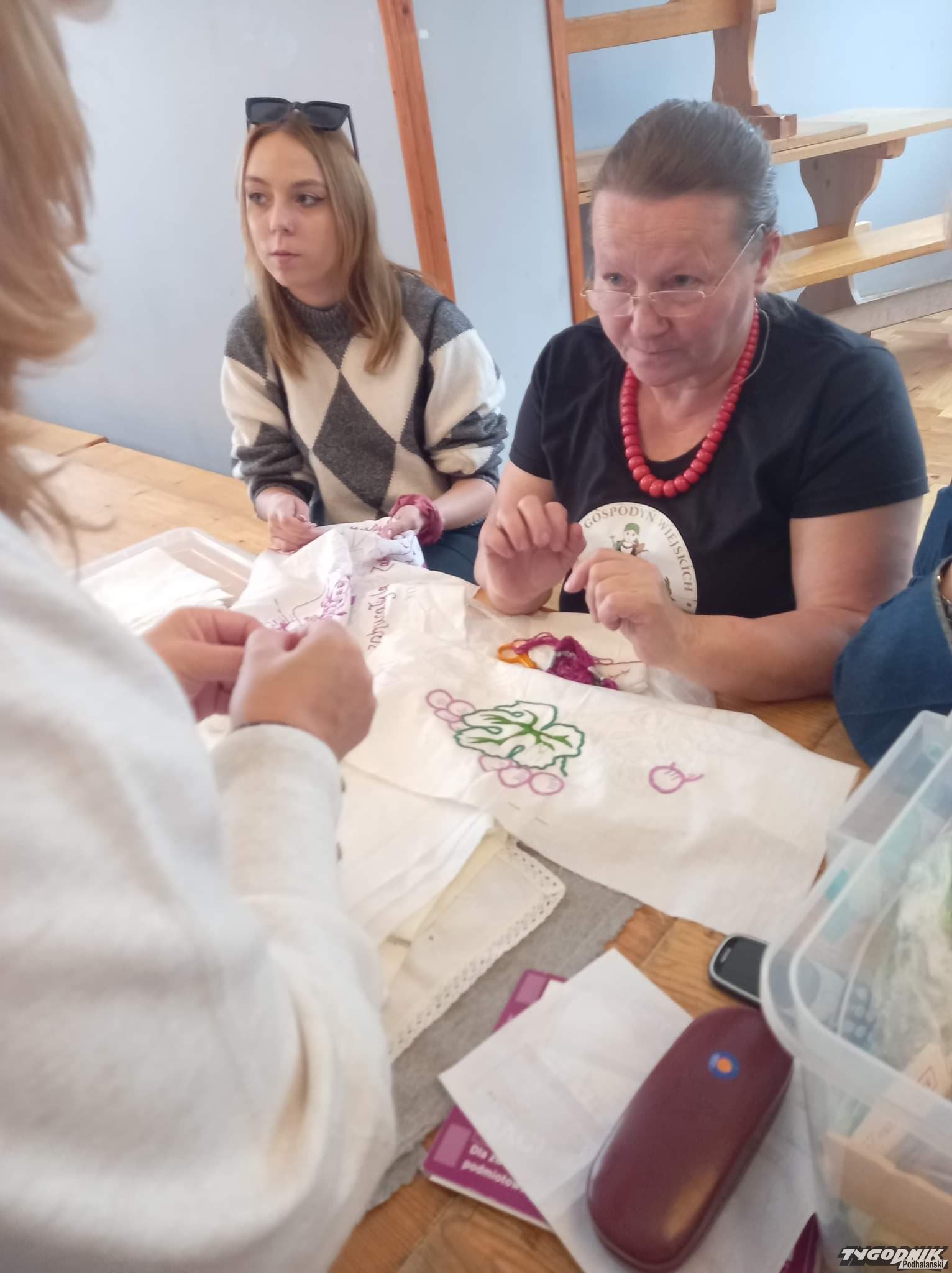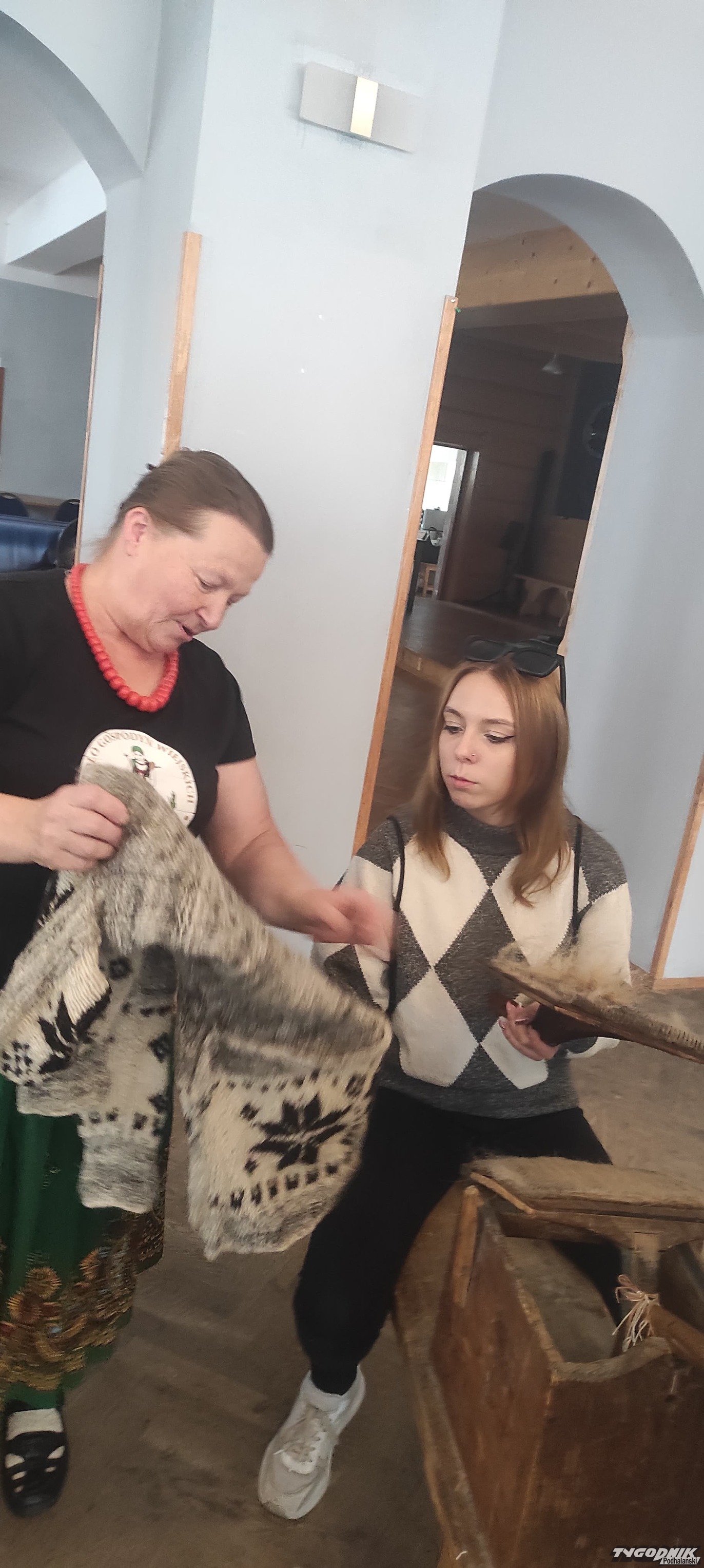 Ochotnickie gaździny pokazywały, jak się obrabia wełnę.