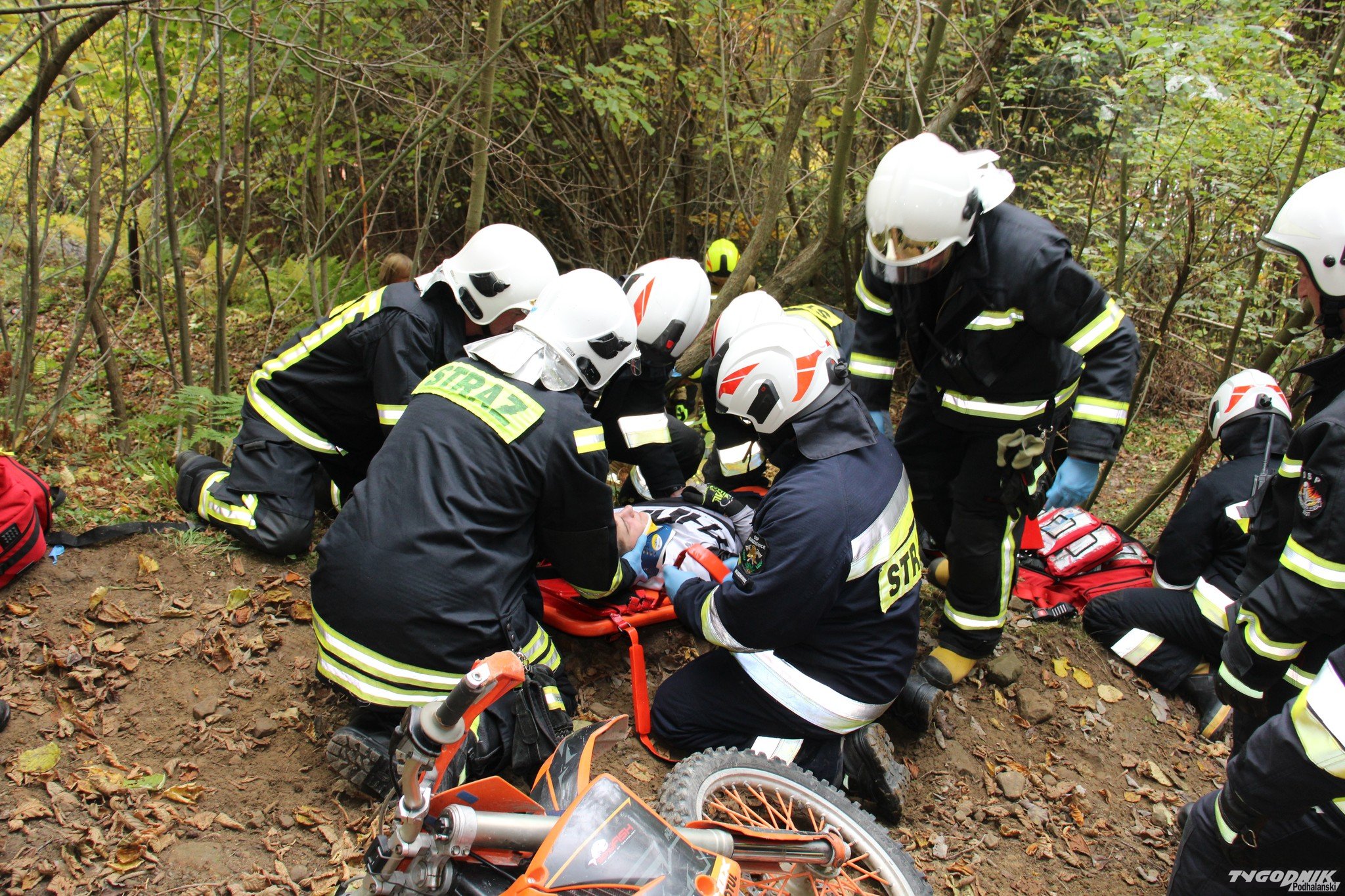 Strażacy udzielili pomocy motocykliście, który uległ wypadkowi