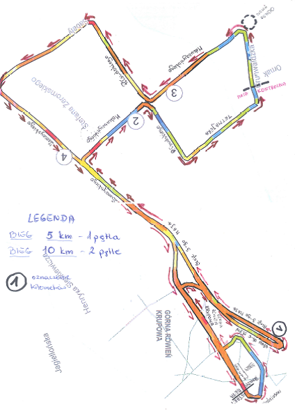 1. Trasa (pętla) przebiegać będzie: START w pobliżu instalacji ZAKOPANE- Górna Rówień Krupowa - alejki Górnej Równi Krupowej – poniżej ul. Staszica skręt w prawo w Aleje 3 Maja – skręt w lewo (nawrotka) - Aleje 3 Maja - Krupówki – Zamoyskiego - Makuszyńskiego - skręt w prawo w Piłsudskiego - skręt w lewo w Tetmajera - skręt w lewo w Grunwaldzką – skręt w lewo w Makuszyńskiego - skręt w prawo w Piłsudskiego - Sabały - skręt w lewo w Zamoyskiego - Krupówki - skręt w prawo na wysokości banku w alejki Górnej Równi Krupowej – META w pobliżu instalacji ZAKOPANE. Niedopuszczalne jest skracanie trasy biegu.