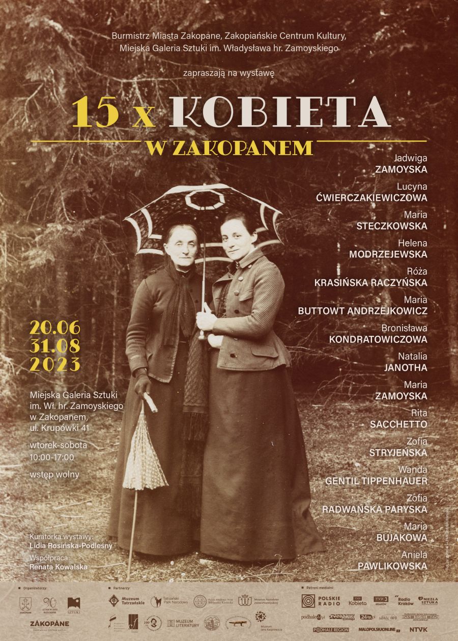 Zakopiańskie Centrum Kultury – Miejska Galeria Sztuki im. Wł. hr. Zamoyskiego zaprasza na wystawę "15 x Kobieta w Zakopanem". Autorski projekt wystawienniczy Lidii Rosińskiej-Podleśny jest opowieścią o kilkunastu nietuzinkowych kobietach, które swoim życiem, działalnością na stałe wpisały się w historię Zakopanego. Mimo, iż reprezentowały różnorodne profesje, pochodziły ze zróżnicowanych środowisk, jak również żadna z nich nie urodziła się w Zakopanem, łączy je fakt, że w swoim życiu, prywatnie i zawodowo, aktywnie działały na rzecz społeczności mieszkańców Podhala.