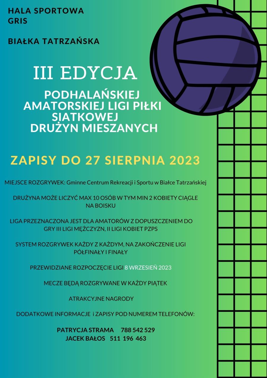 Zapisy do Podhalańskiej Amatorskiej Ligi Piłki Siatkowej drużyn mieszanych