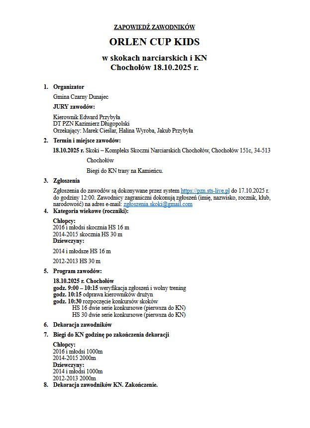 Orlen Cup Kids skoki narciarskie i kombinacja norweska. Chochołów