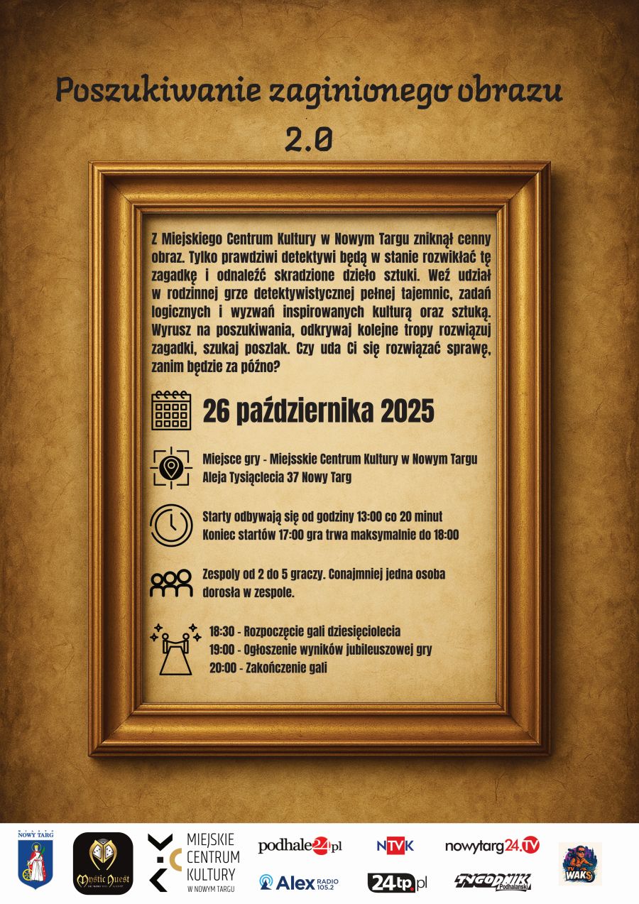 Rodzinna gra miejska: Poszukiwanie zaginionego obrazu 2.0 oraz Gali 10-lecia Gier Miejskich w Nowym Targu
