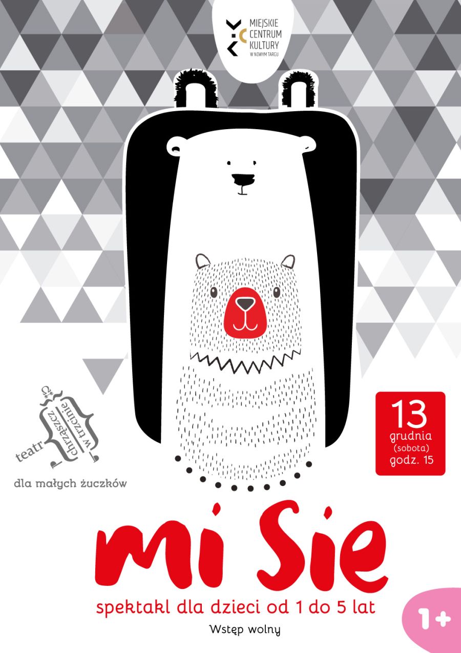 W dniu 13 grudnia (sobota) o godz.15.00 na sali widowiskowej MCK Nowy Targ odbędzie się spektakl „mi Sie” dla najmłodszych (1-5 lat wraz z opiekunami/rodzicami). Wstęp wolny – ograniczona ilość miejsc! Prosimy o zapisy na email: tomasz_szlaga@mck.nowytarg.pl.