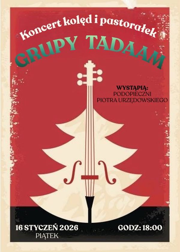 16.01, 18.00 KONCERT KOLĘD I PASTORAŁEK "GRUPY TADAAM" - występ podopiecznych Piotra Urzędowskiego
