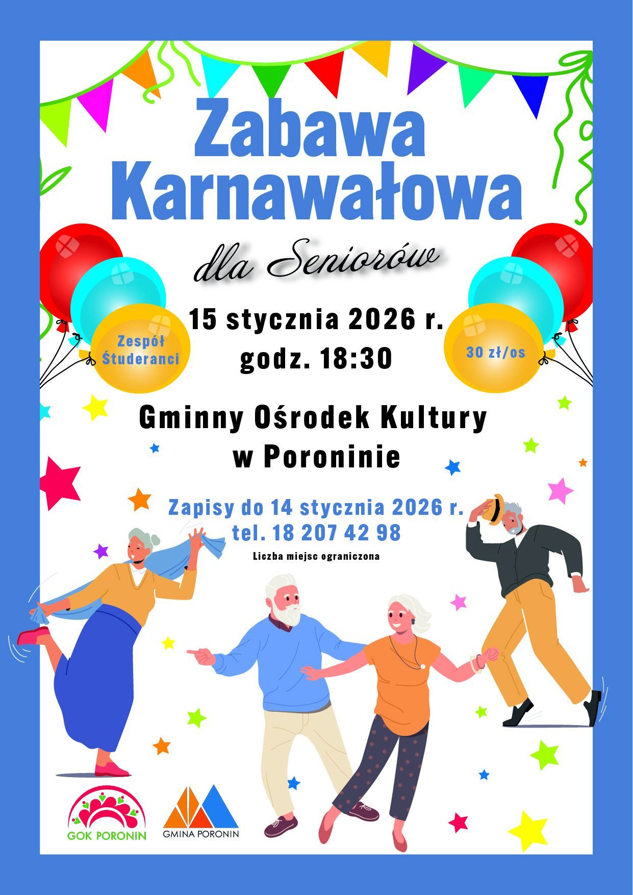 Zabawa karnawałowa dla seniorów. Poronin