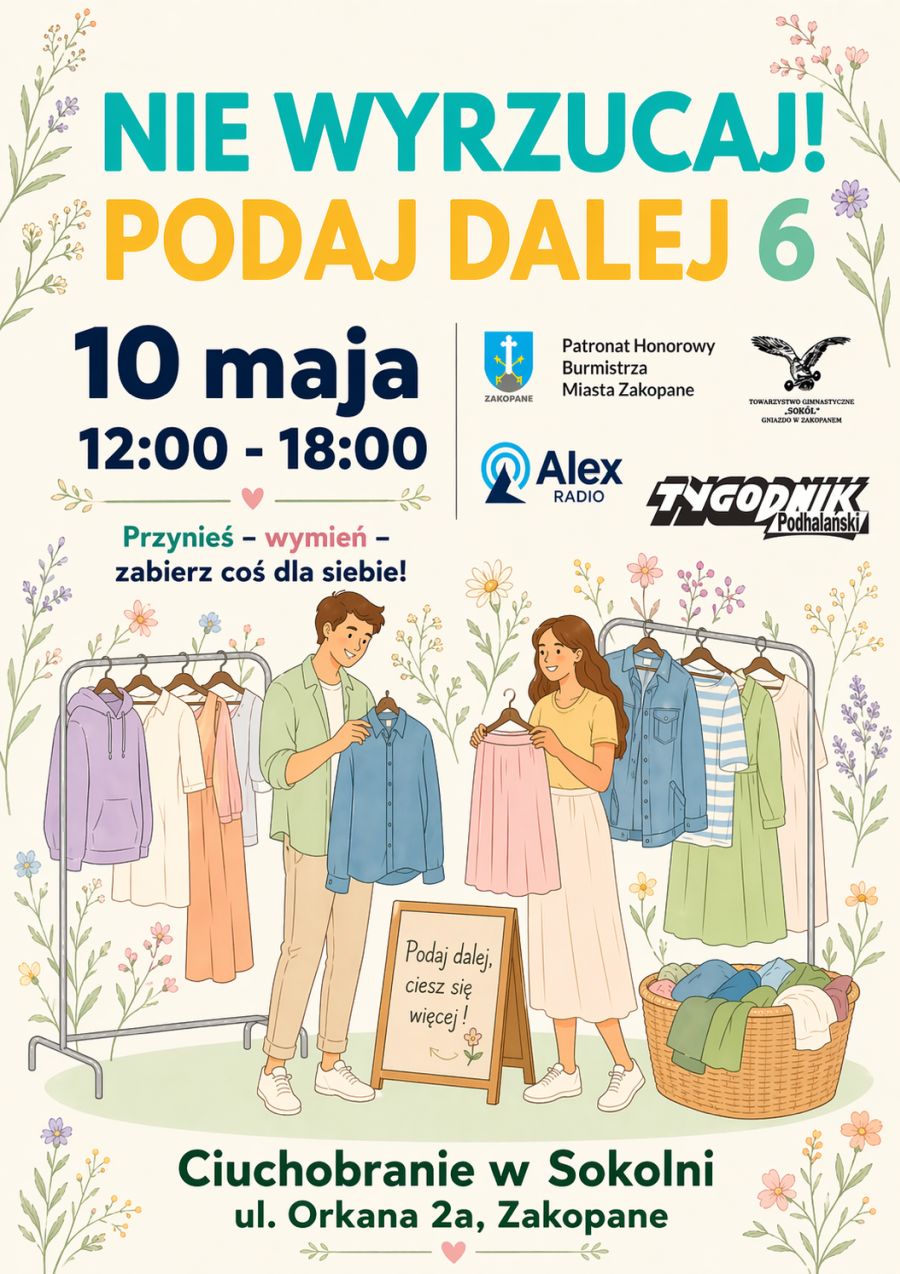 Już po raz szósty w Sokolni organizuję Nie wyrzucaj, podaj dalej -wydarzenie, podczas którego rzeczy nie trafiają do kontenera, tylko do nowych rąk. To świetna okazja, żeby za darmo odświeżyć garderobę, zrobić porządki w domu i dać drugie życie temu, co już nam nie służy.