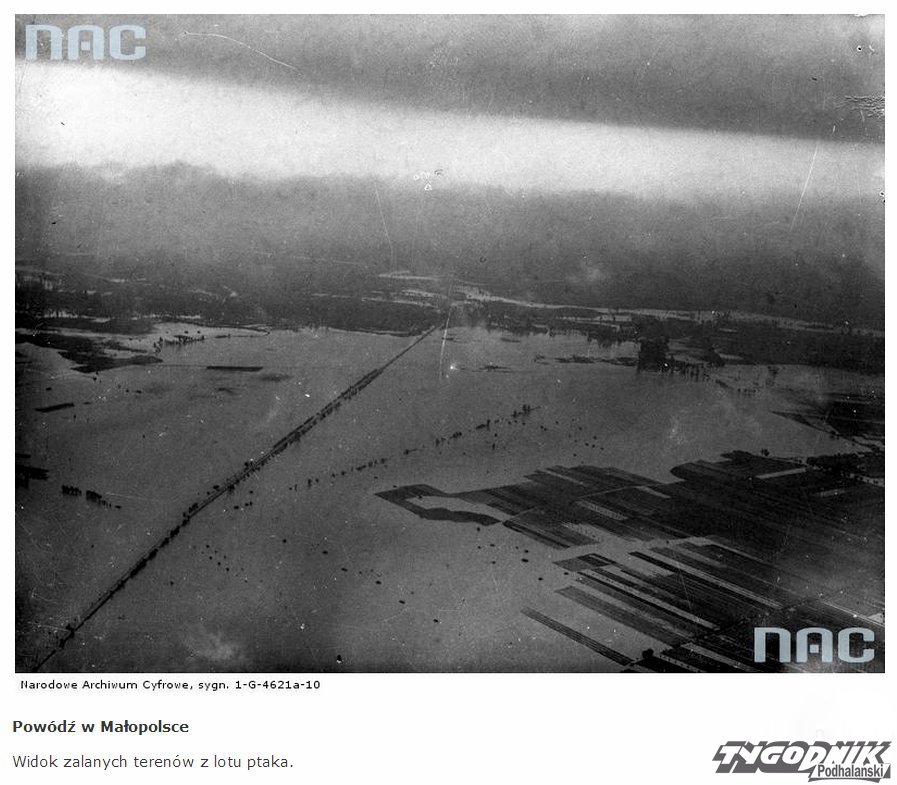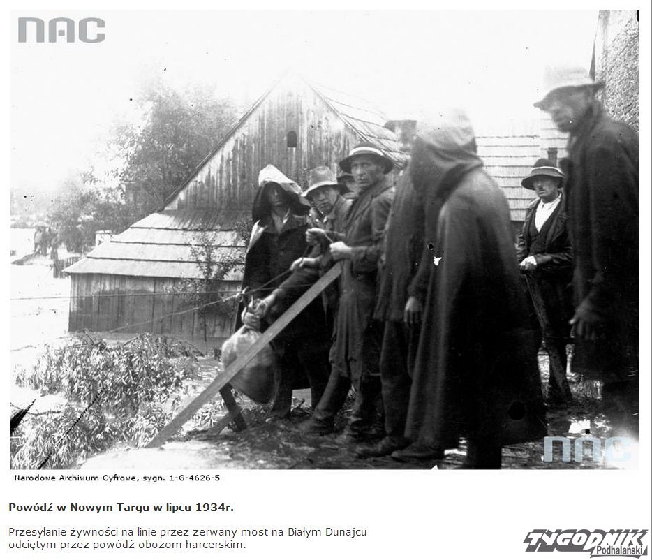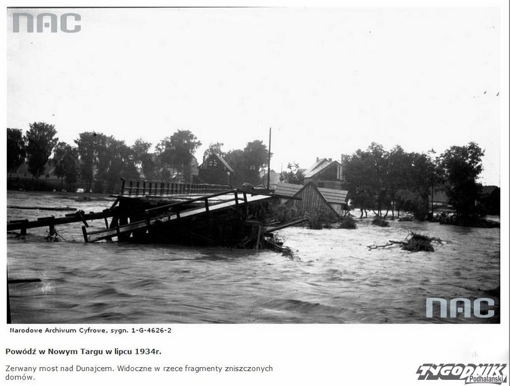 Powódź z lipca 1934 roku była dla Polaków szokiem. Głównie z powodu nieprzygotowania regionu na tego typu zdarzenia. Na nieszczęście katastrofa dotknęła jednych z najbardziej nierozwiniętych gospodarczo i najbiedniejszych terenów Polski. Setki miejscowości zostało zniszczonych i odciętych od zaopatrzenia. Szczególnie ciężka sytuacja panowała na Podhalu, gdzie pędzące w wielką szybkością masy wody dokonały wielkich spustoszeń. W pierwszych dniach zaopatrzenie dostarczane było tylko samolotami, a mieszkańcy rozpoczęli budowy prowizorycznych przepraw. ówczesna prasa rozpisywała się o panującym głodzie, rozpaczy i akcji pomocy powodzianom oraz o skali problemów z jakimi musiał zmierzyć się polski rząd. Przede wszystkim wielkim problemem było ulokowanie tysięcy rodzin, które w powodzi straciły cały dobytek. Zdarzały się przypadki okradania resztek ocalałego majątku w opuszczonych zabudowaniach. Zdecydowanie działał wymiar sprawiedliwości, a złapani złodzieje byli natychmiast surowo osądzani. Władze błyskawicznie postępowały także ze wszystkimi, którzy uchylali się od udzielenia pomocy. Jak z pewnym dzierżawcą majątku w Wierzchosławicach, który rano odmówił przyjęcia do stajni uratowanych z powodzi chłopskich koni, a już tego samego dnia po południu został przetransportowany przez policję do obozu internowania w Berezie Kartuskiej.