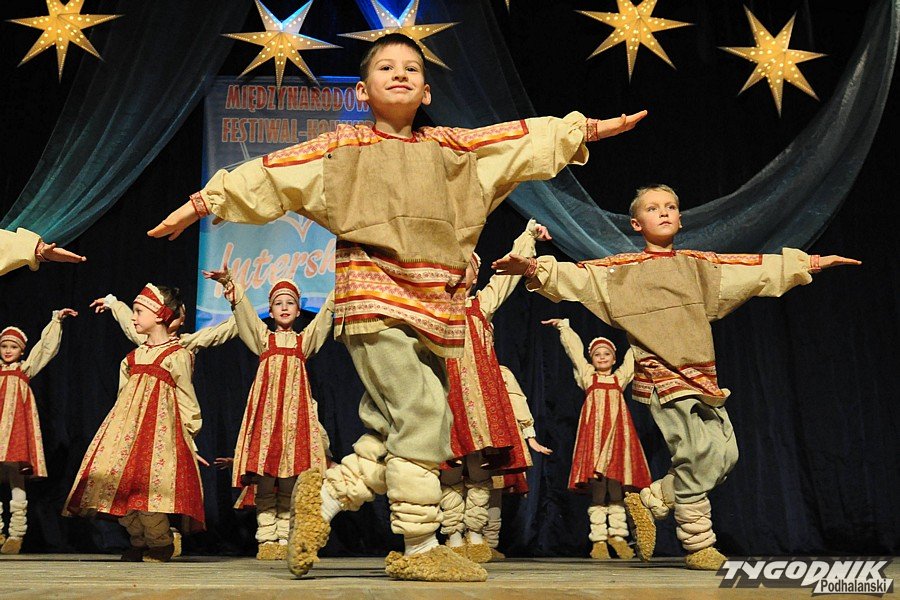 Międzynarodowy Festiwal Pieśni i Tańca „Intershow” trwał od poniedziałku. Ponad 130 wykonawców - zespołów i solistów, a więc łącznie kilkaset osób - z Mołdawii, Białorusi, Rosji, Kazachstanu, Ukrainy, Estonii, Łotwy i Polski rywalizowało na scenie MOK i Państwowej Szkoły Muzycznej. 30 najlepszych wystąpiło w czwartek w dwugodzinnym koncercie galowym, który zachwycał profesjonalizmem wykonawców i bogactwem strojów. Programy zaprezentowane przez gości zza naszych wschodnich granic dopięte były na ostatnich guzik, a talent - co widać było wyraźnie - szedł w parze z gigantyczną pracą młodych i najmłodszych pod okiem doskonałych instruktorów.
