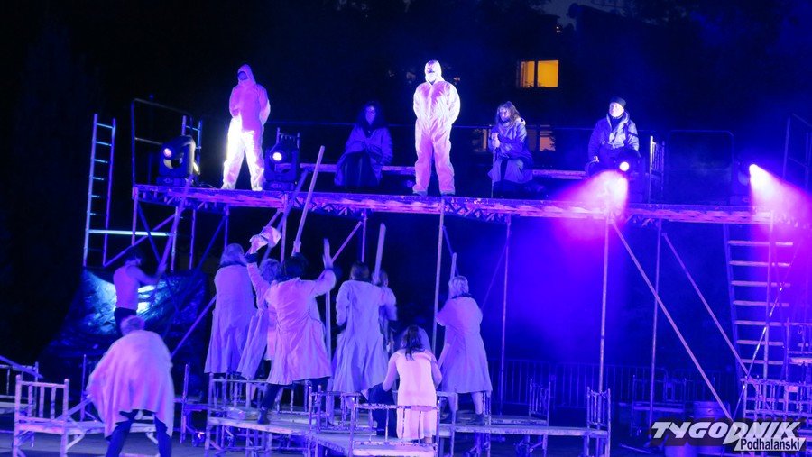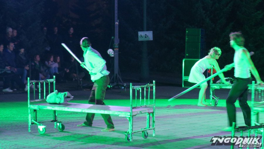 Plenerowe przedstawienie Teatru KTO z Krakowa odbyło się w piątkowy wieczór na placu przed Teatrem Witkacego w Zakopanem. Spektakl "Ślepcy" inspirowany jest bestselerem portugalskiego noblisty Jose Saramago "Miasto ślepców". Spektakl, który premierę miał w 2010 roku wyreżyserował Jerzy Zoń, szef i współzałożycie Krakowskiego Teatru Osobliwości. Widowisko było jednym z wielu wydarzeń trwających XIII. Zakopiańskich Prezentacji Artystycznych Pępek Świata. W tym roku pod hasłem "Pochwała głupoty. Potęga fałszywej świadomości".