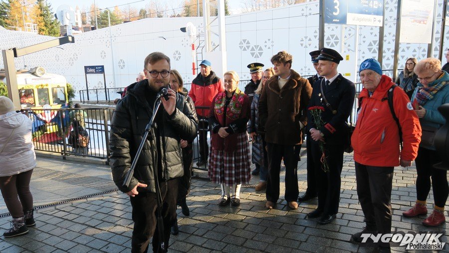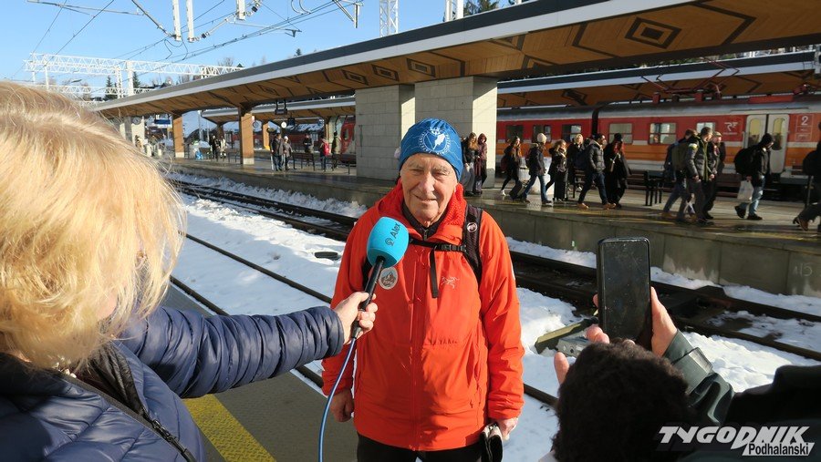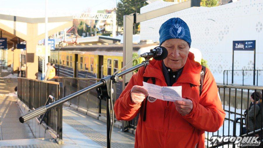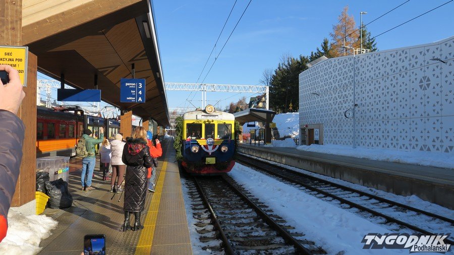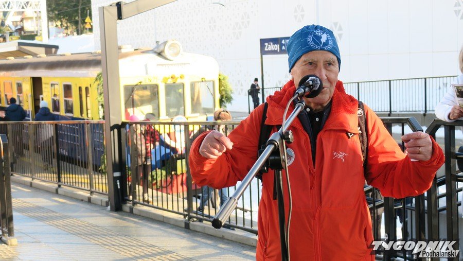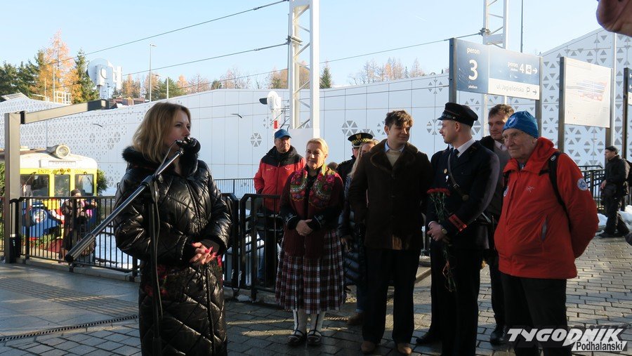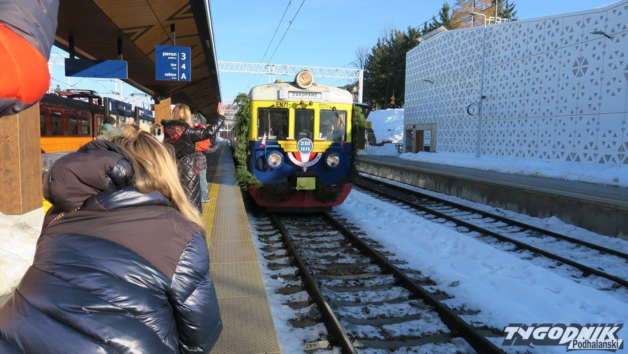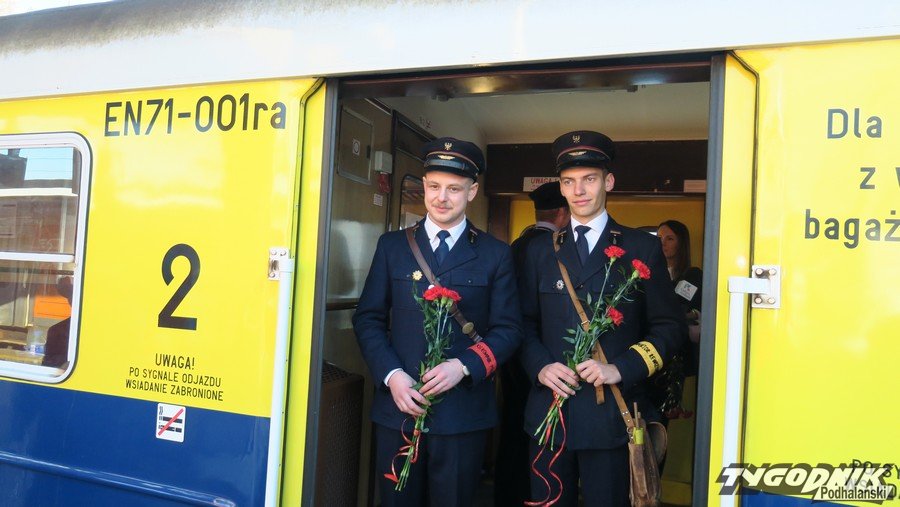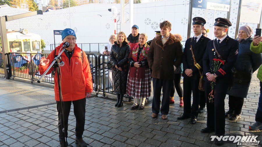 Powitanie historycznego pociągu retro z okazji 50. rocznicy elektryfikacji "Zakopianki". Na peron zajechał skład EN71-001 z załogą w historycznych mundurach. Ekipę wita Iwona Grzebyk-Dulak, a o historii opowiada Jakub Stawarz, członek Nowosądeckiego Stowarzyszenia Miłośników Kolei, dziś kierownik składu EN71-001, a także Apoloniusz Rajwa, który uwieczniał to wydarzenie na kolorowych slajdach.