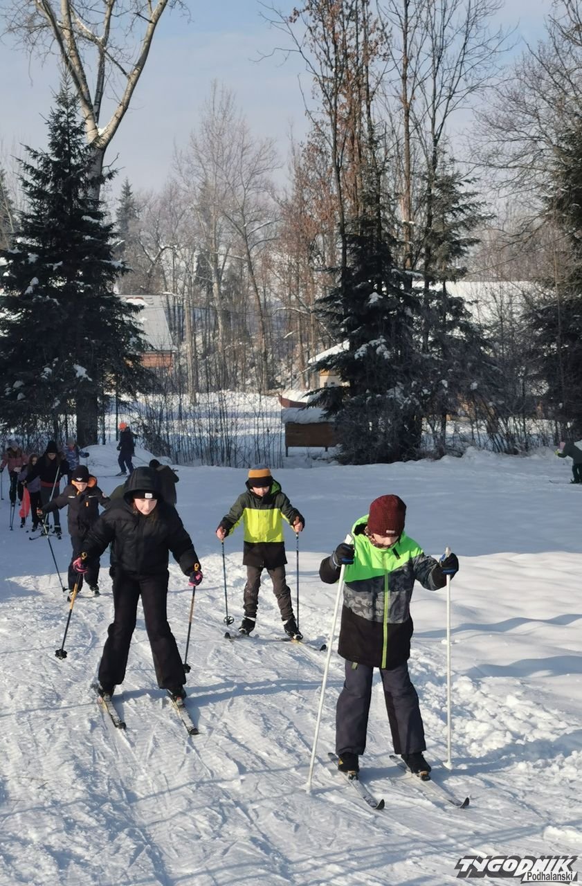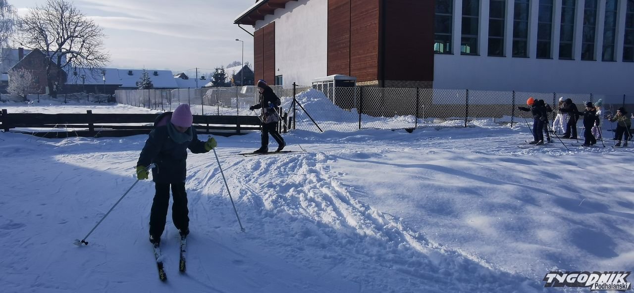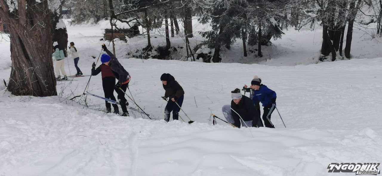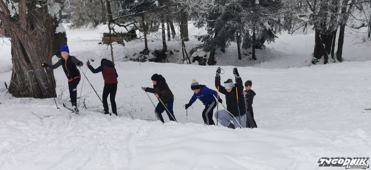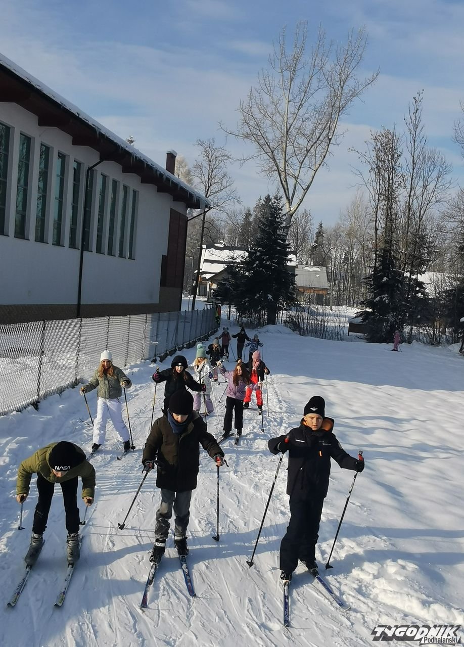 Uczniowie ze Szkoły Podstawowej nr 1 im. Bohaterów Westerplatte w Cichem każde zajęcia z wychowania fizycznego spędzają na narciarskich biegówkach.