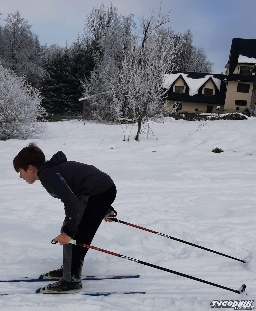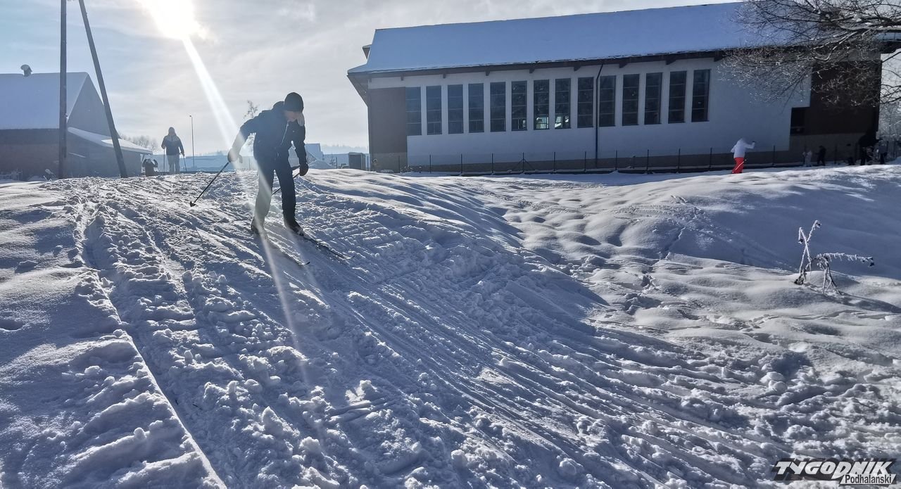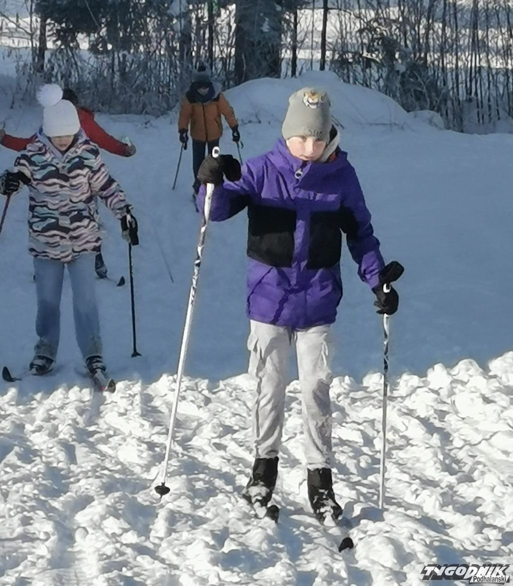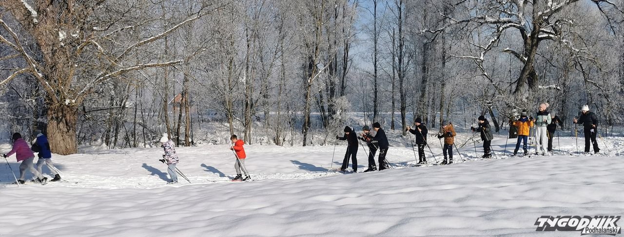 Uczniowie ze Szkoły Podstawowej nr 1 im. Bohaterów Westerplatte w Cichem każde zajęcia z wychowania fizycznego spędzają na narciarskich biegówkach.