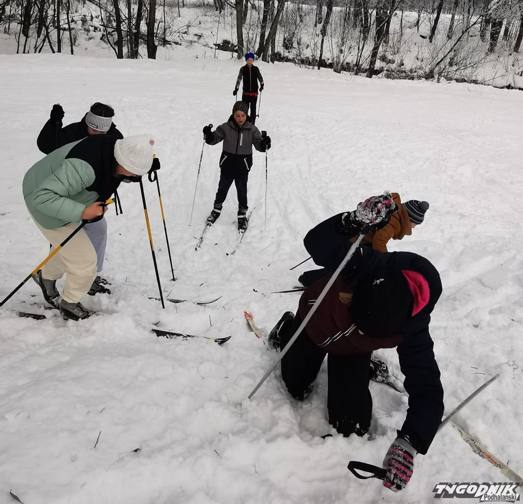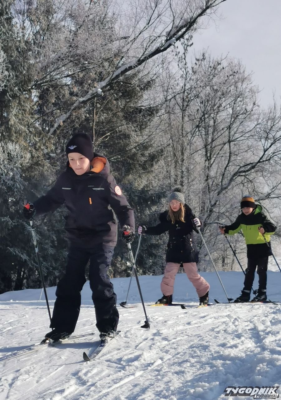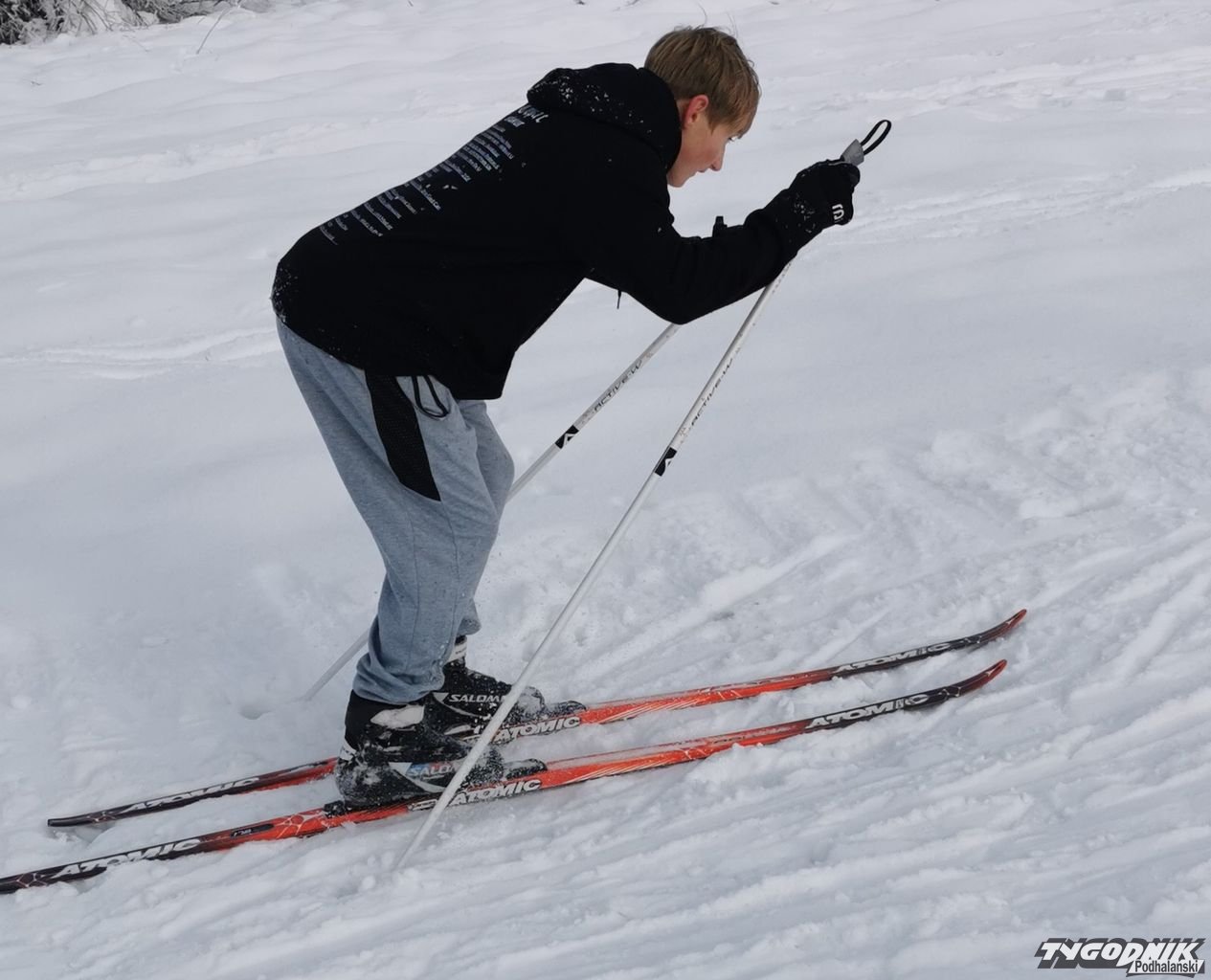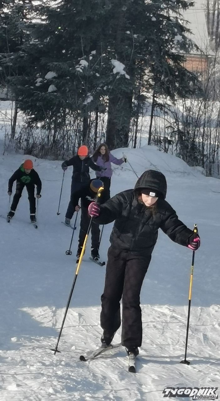 Uczniowie ze Szkoły Podstawowej nr 1 im. Bohaterów Westerplatte w Cichem każde zajęcia z wychowania fizycznego spędzają na narciarskich biegówkach.