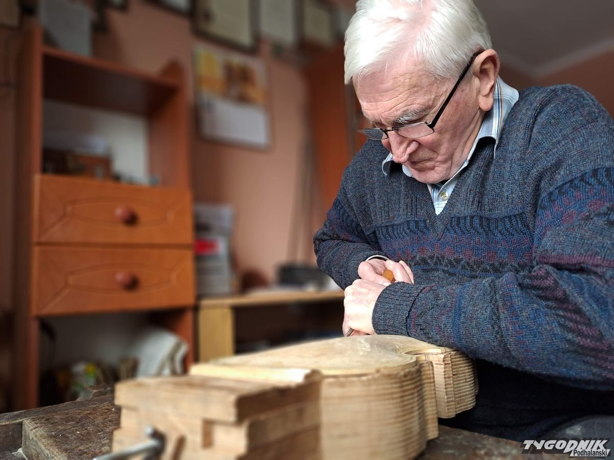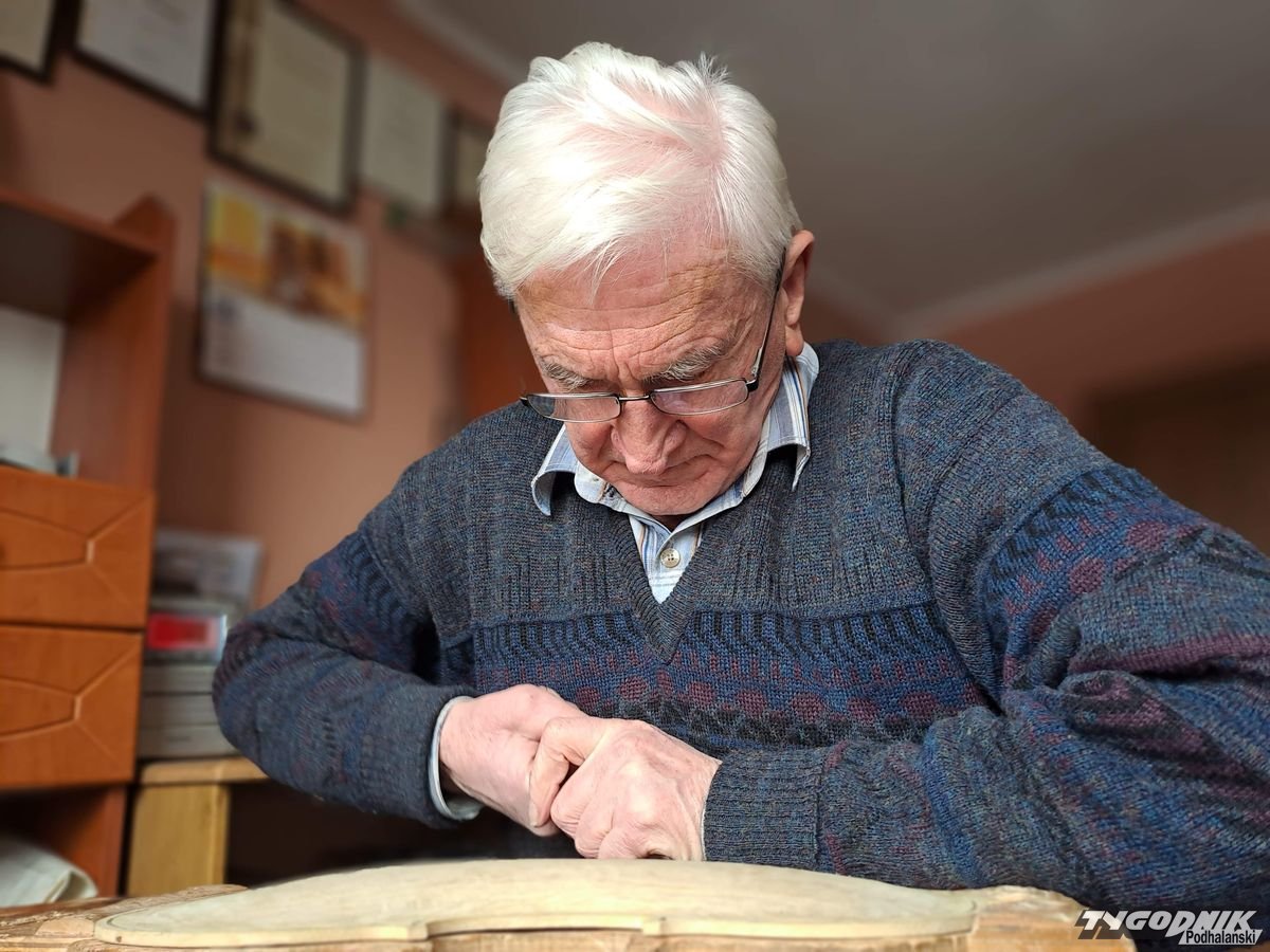 - Kiedyś, jak już nie będę miał siły robić skrzypiec, to zrobię sobie w tej pracowni izbę pamięci narodowej - mówi, wybuchając śmiechem. I znajdą się w niej instrumenty, które już teraz nie są na sprzedaż. Te oglądamy w pokoju na piętrze. Instrumenty ozdobione są drobnymi malunkami kwiatów, wykonanych przez samego Jaśka.