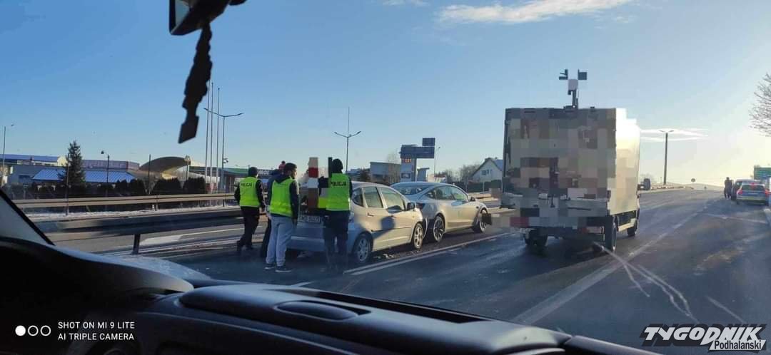 Zderzenie trzech aut w Jaworniku i korki na zakopiance