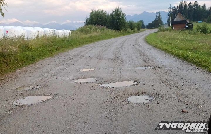 Dziury w drodze z gliny i tłucznia ??? Weź tocke, żwir i łopatę i nie pajacuj...
