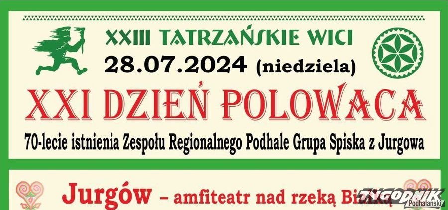 W niedzielę 28.07 XXI Dzień Polowaca i jubileusz 70-lecia Zespołu Regionalnego Podhale Grupa Spiska z Jurgowa. To kolejne wydarzenie w kalendarzu Tatrzańskich Wici.
