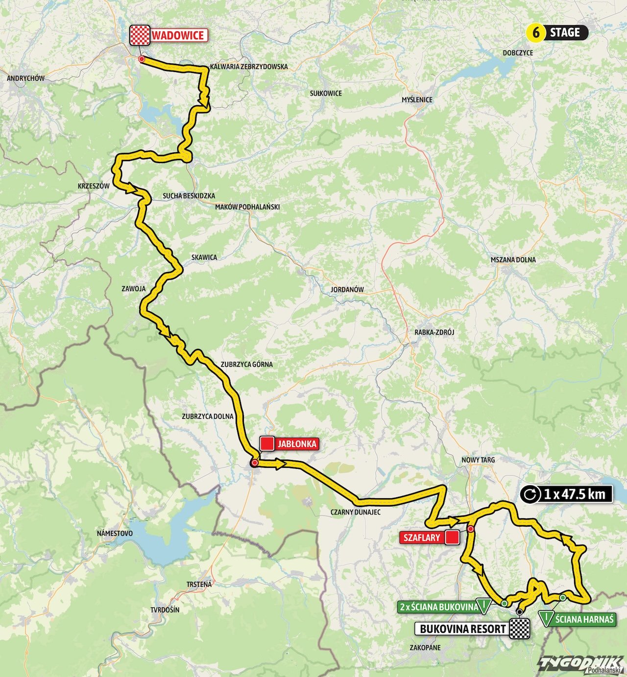 Kolarze Tour de Pologne w powiecie tatrzańskim pojawia się już w najbliższą sobotę 17 sierpnia. Z tego powodu zamknięte będą niektóre drogi w gminach Biały Dunajec i Bukowina Tatrzańska. Należy spodziewać się trudności komunikacyjnych.