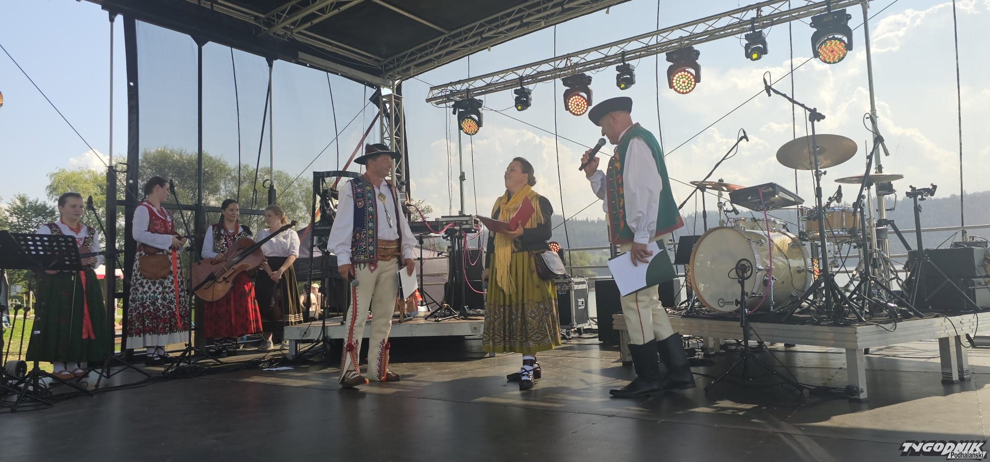 Za sprawą świetnego pomysłu Stowarzyszenia Sprężyna mogliśmy na jednej plenerowej scenie na "Wyskocz na" w Maniowach - nad samym Jeziorem Czorsztyńskim - zobaczyć i podziwiać tę różnorodność. Bo były nie tylko występy, ale też trochę edukacji. Prezentacja strojów z objaśnieniem, jak nazywają się poszczególne części garderoby, które przeznaczone są dla panien czy kawalerów, a które dla kobiet zamężnych. Były też opowieści o gwarze, konferansjerka okraszana dowcipami, konkursy i wiele innych atrakcji.