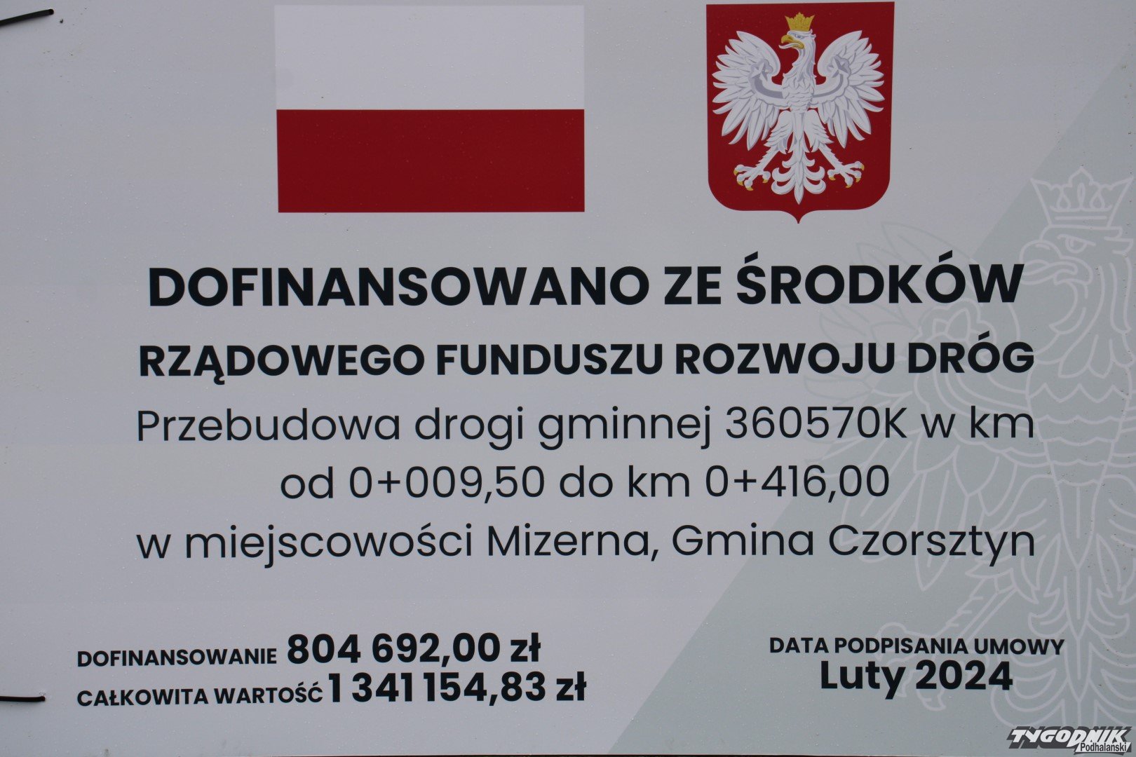 Inwestycja pochłonęła 1,3 mln zł, z czego .60 % tj. ponad 800 tys. zł pochodziło z „Rządowego Funduszu Rozwoju Dróg”.