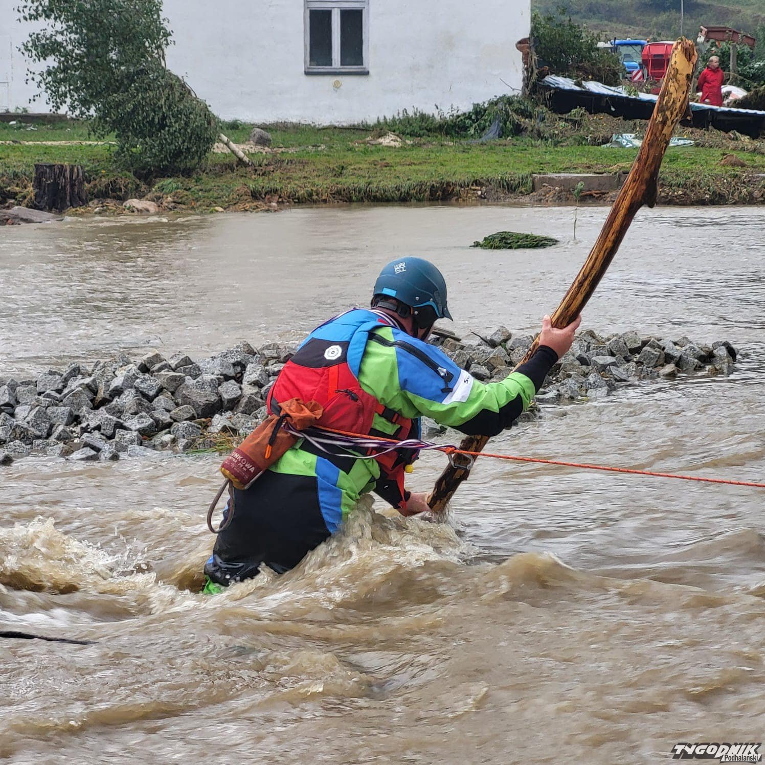 Ratownicy GOPR pomagają poszkodowanym w powodzi