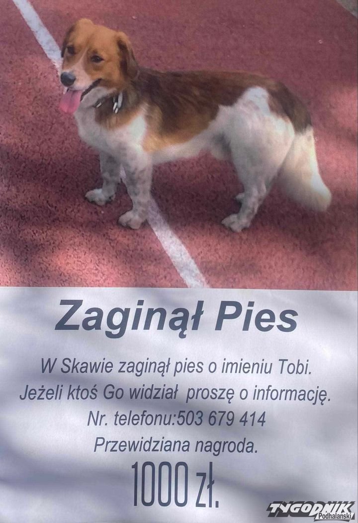 Jeśli ktoś widział Tobiego proszony jest kontakt z właścicielką.